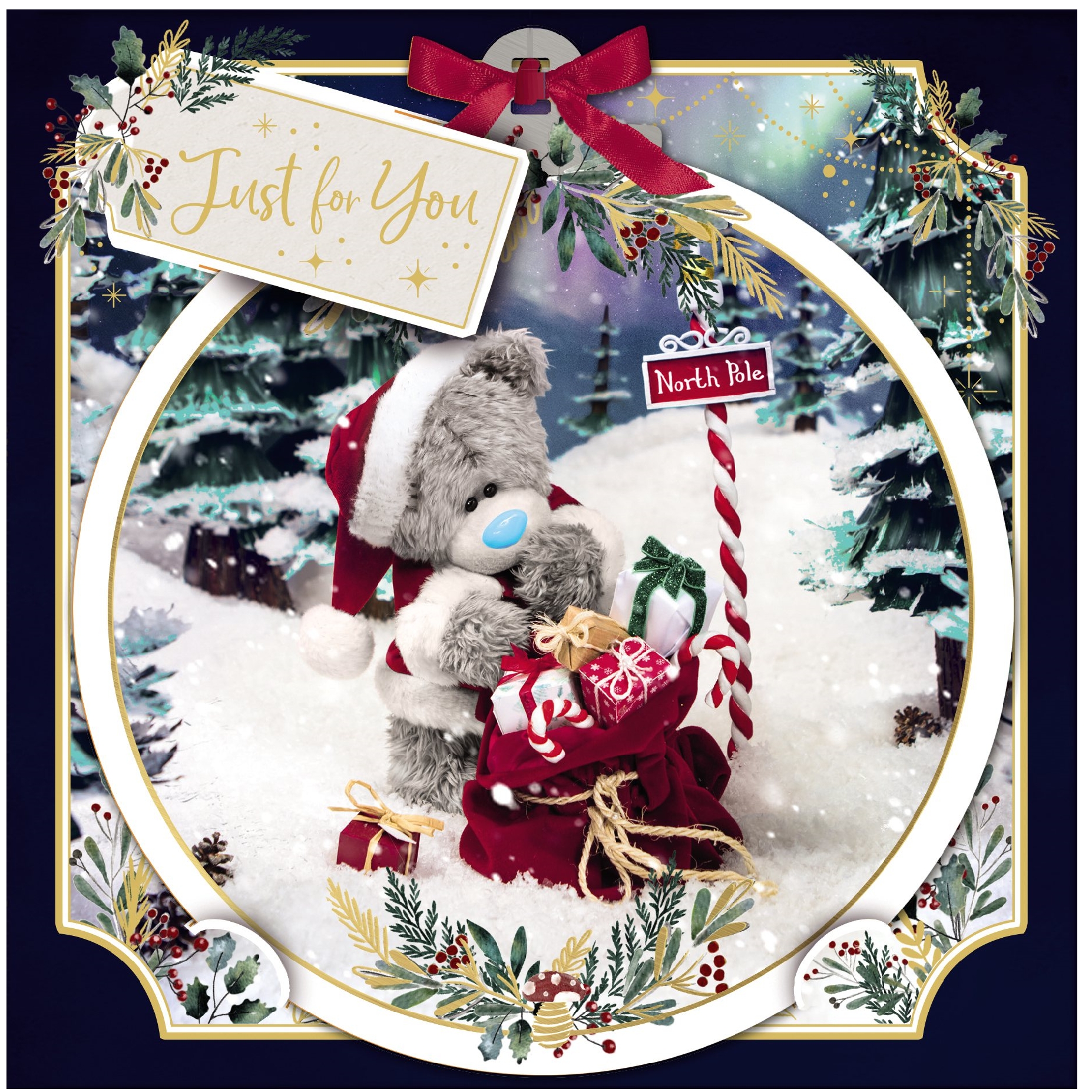 Szczegóły: Kartka świąteczna 3D - Miś z workiem prezentów