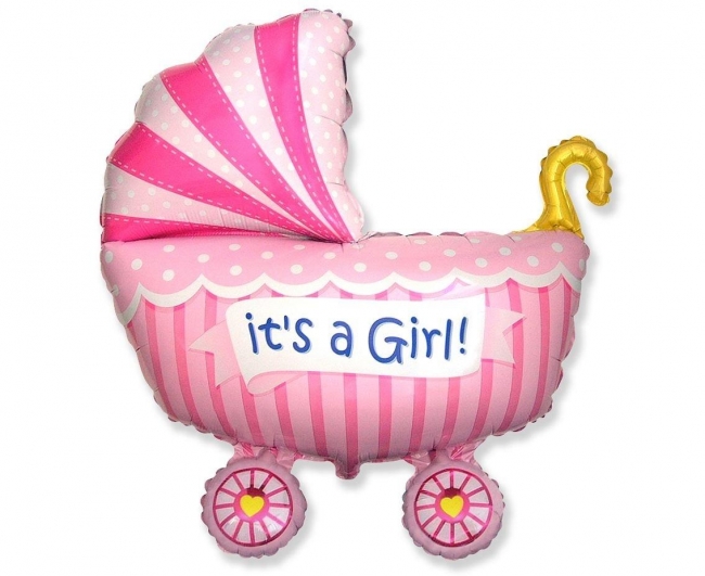 Opis: Balon foliowy 61cm Wózek dla dziewczynki
