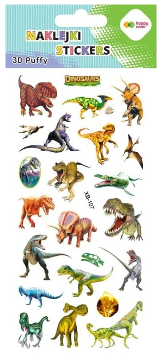 Szczegóły: Naklejki 3D Puffy - Real Dino, 9.5 cm x 22 cm, Happy Color