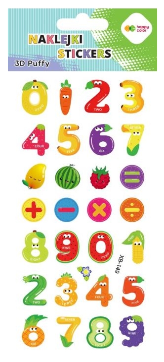 Nazwa: Naklejki 3D Puffy - Fruit Numbers, 9.5 cm x 22 cm, Happy Color
