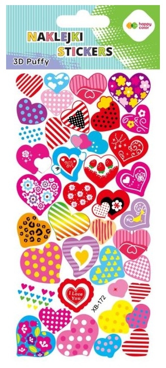 Szczegóły: Naklejki 3D Puffy - Colorful Hearts, 9.5 cm x 22 cm, Happy Color