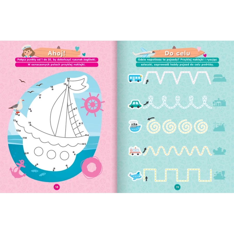 Aktywizujące zadania z naklejkami pomagają dzieciom rozwijać wiele umiejętności. Zachęcają do liczenia, rozwijają spostrzegawczość i sprawność manualną oraz koncentrację uwagi – gwarantują miło i owocnie spędzony czas.