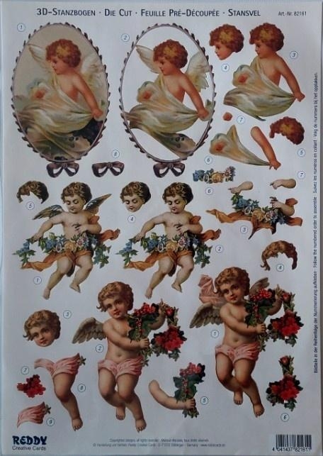 Arkusz do techniki 3 D z wysztancowanymi elementami . Format A-4, nie wymagające wycinania. Oznaczenia cyfrowe pomagają w perfekcyjnym nakładaniu elementów na siebie celem tworzenia wypukłych kompozycji.