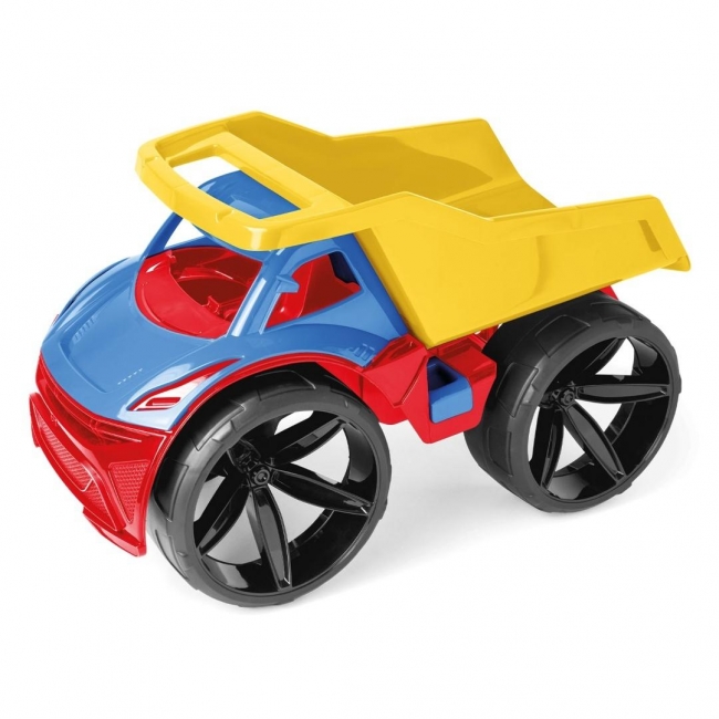 Maximus Wywrotka w nowej, energetycznej kolorystyce czerwono-granatowo-żółtej to pojazd, który natychmiast przyciąga uwagę dzieci. Ten zestaw kolorów został zaprojektowany tak, aby był jak najbardziej atrakcyjny i czytelny dla najmłodszych - to właśnie te kontrastowe, żywe kolory najczęściej wybierają i uwielbiają małe dzieci. To duża, solidna wywrotka o nowoczesnym designie - charakterystycznym dla serii Maximus - zaprojektowana tak, by wytrzymać codzienne wyzwania stawiane jej przez małych budowniczych. Efektowna kolorystyka, połączona z masywną konstrukcją i realistyczną funkcją podnoszenia skrzyni ładunkowej, sprawia, że jest to pojazd, który natychmiast przyciąga uwagę.