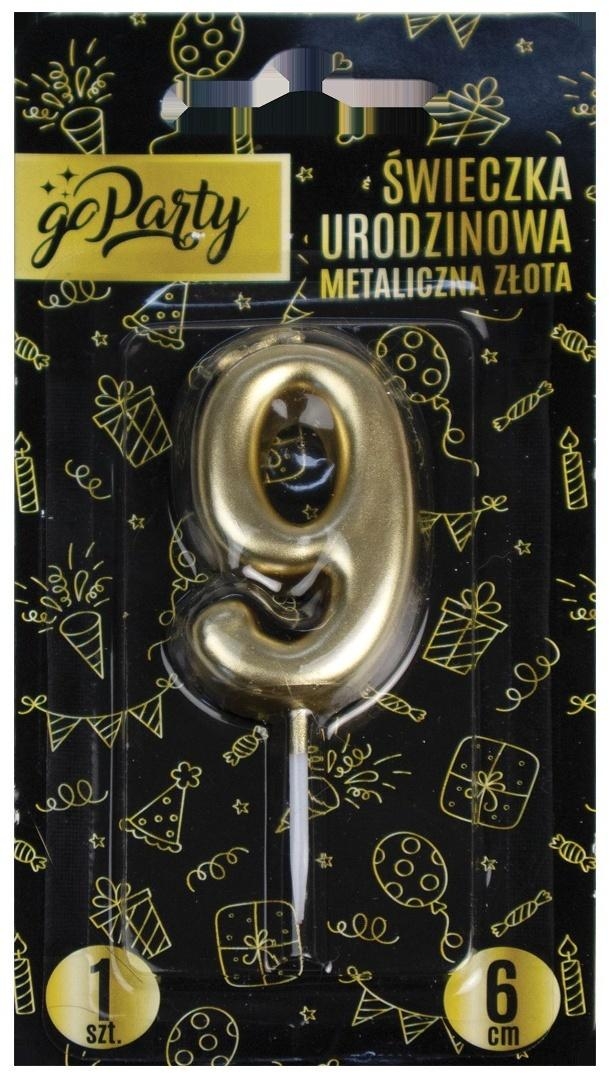Opis: Świeczka urodzinowa 9 Metaliczna złota