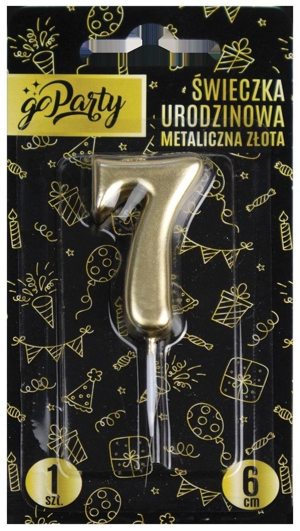 Opis: Świeczka urodzinowa 7 Metaliczna złota