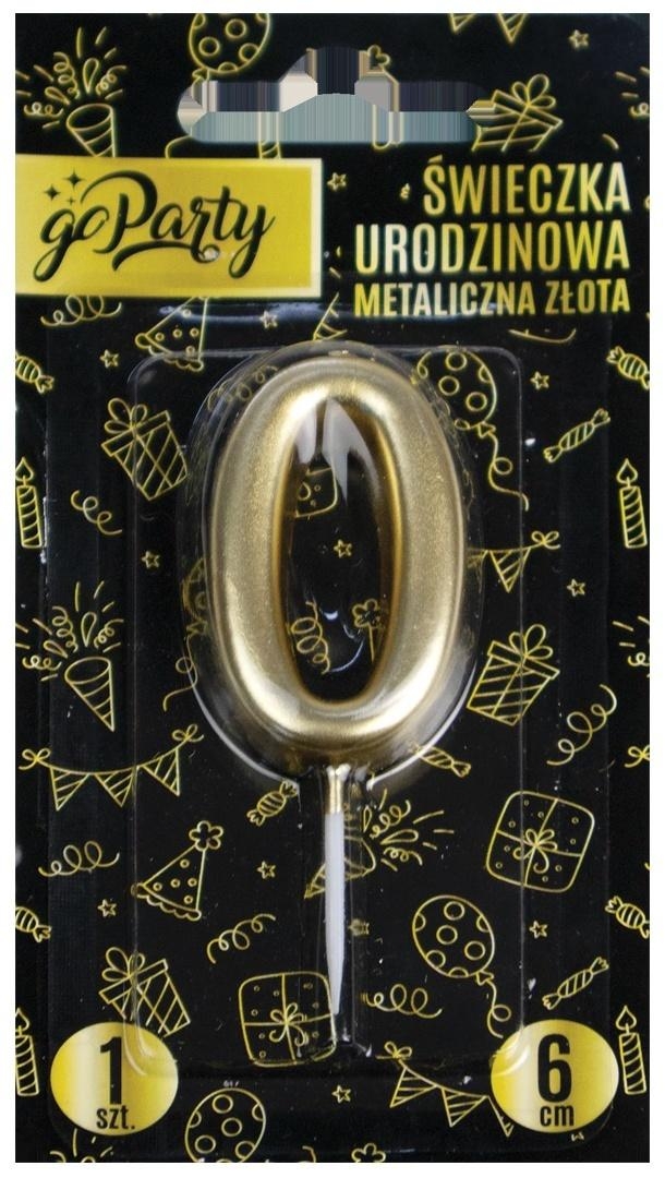 Opis: Świeczka urodzinowa 0 Metaliczna złota