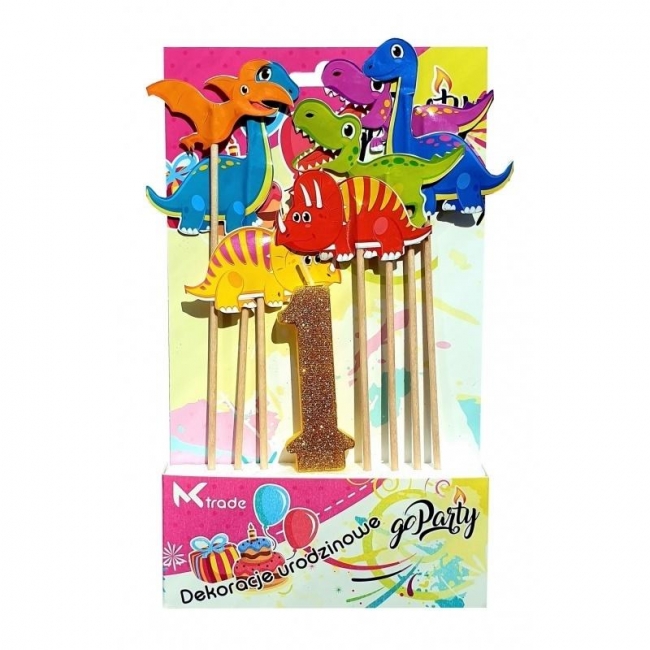 Dekoracja urodzinowa świeczka i dinozaury 8szt