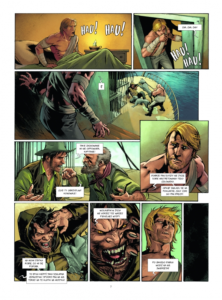Komiksowa adaptacja głośnej powieści science-fiction Herberta Georgeʼa Wellsa. Edward Prendick, jedyny ocalały z katastrofy morskiej, zostaje uratowany przez statek, którym płynie Montgomery, asystent doktora Moreau. Przez ostatnie dziesięć lat na odizolowanej wyspie ci dwaj naukowcy przeprowadzali przerażające eksperymenty, modyfikując genetycznie zwierzęta, aby uczynić je świadomymi. Zwierzoludzie przestrzegają bardzo precyzyjnego zbioru zasad – Prawa – zabraniającego im wszelkich prymitywnych zachowań, i czczą Moreau jak boga. Wkrótce okazuje się, że w Zwierzoludziach nadal drzemią pierwotne instynkty...