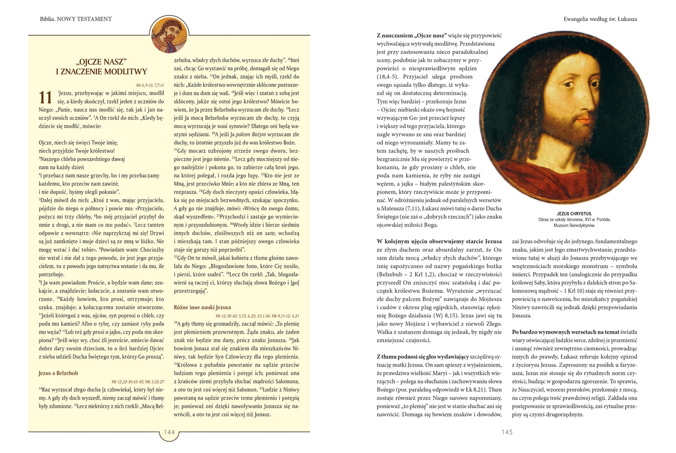 Biblia. Nowy Testament. Tekst – komentarz – ilustracje to ponadczasowa propozycja Wydawnictwa JEDNOŚĆ. Nie może być inaczej, bo przecież Pismo Święte jest adresowane do ludzi wszystkich czasów i pokoleń. Nowy Testament obejmuje 27 utworów różnej wielkości, liczących ponad 140 tys. greckich wyrazów. Oczywiście zaprezentowany jest w tłumaczeniu obecnym w Biblii Tysiąclecia (wydanie V).