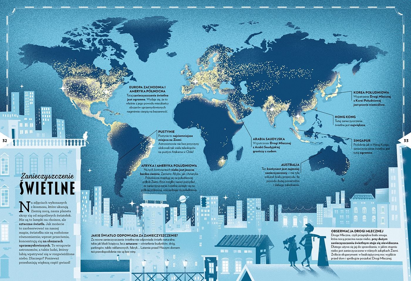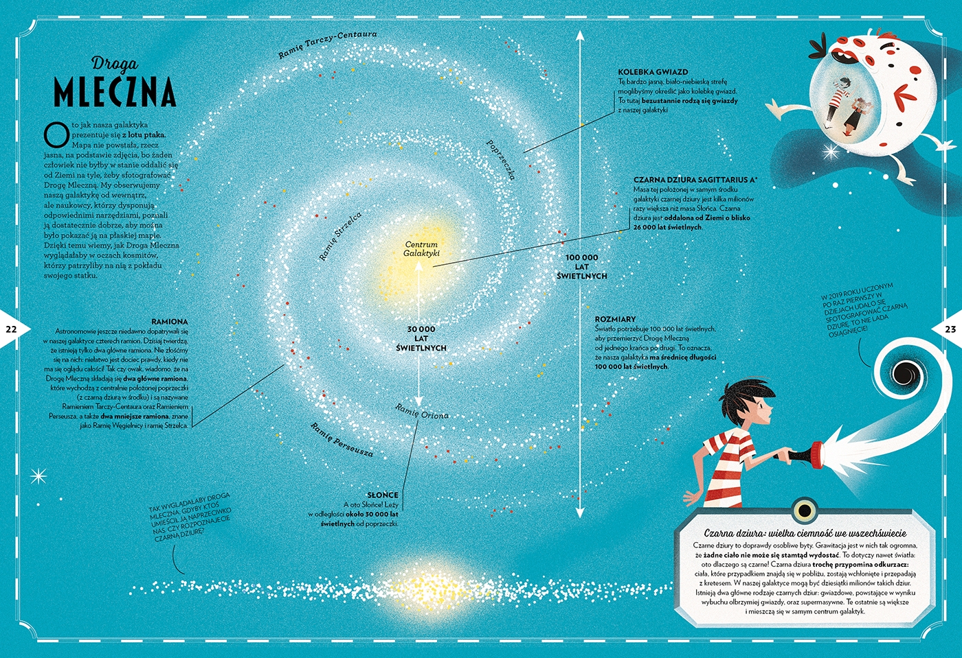 Ta niezwykle ciekawa książka, napisana przez cenioną popularyzatorkę fizyki i astronomii, pomoże nam odnaleźć się wśród planet i konstelacji. Opowie krok po kroku, co możemy obserwować nad naszymi głowami i co zobaczymy tylko za pomocą nowoczesnych teleskopów. Gwiazdy, galaktyki, mgławice i supernowe nie będą już miały przed nami tajemnic. Poznamy ich położenie w bezkresnym wszechświecie dzięki bogatym w szczegóły ilustrowanym mapom. Dowiemy się wiele o astronautyce, badaniach i wyprawach kosmicznych.