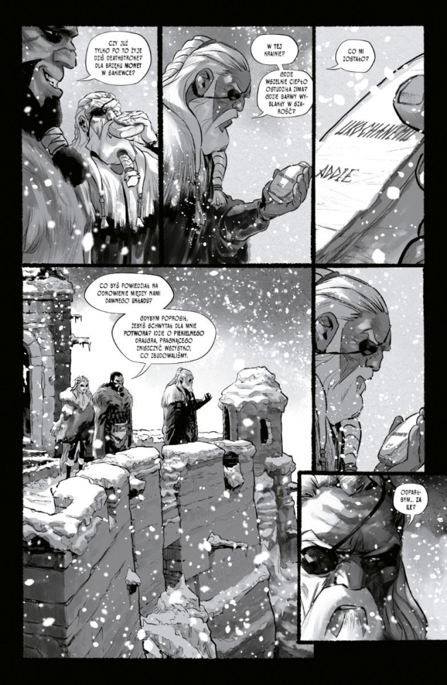 Śnieżyca nie odpuszcza, krew czernieje, a barwy stanowią odległe wspomnienie. Legendarny zabójca Deathstroke grasuje na lodowych pustkowiach, mordując na zlecenie skłóconych Jarlów. Lecz gdy płatny morderca stanie się obrońcą, czy zdoła odczynić klątwę niszczącą jego kraj, czy prędzej dopadną go konsekwencje ponurej przeszłości? Uznany pisarz SF i fantasy Jay Kristoff połączył siły ze wschodzącą gwiazdą rysunku Tirsem, aby stworzyć niniejszy album. W tym tomie zawarto również opowieść Toma Taylora, twórcy świata „Mrocznych Rycerzy ze Stali”, zilustrowaną przez Riccarda Federiciego („Superman Action Comics: Arena”), przedstawiającą nową genezę Aquamana w konwencji magii i miecza!