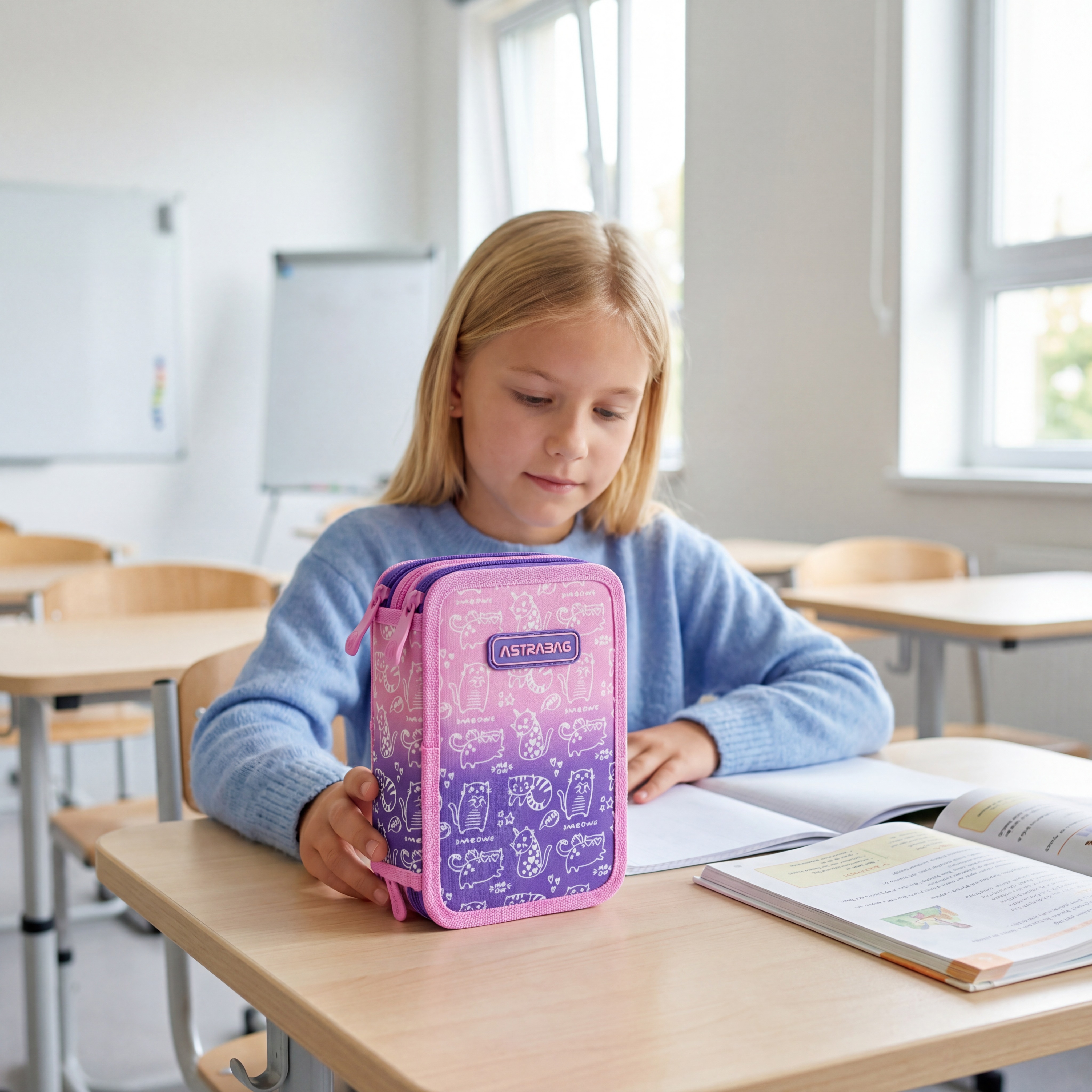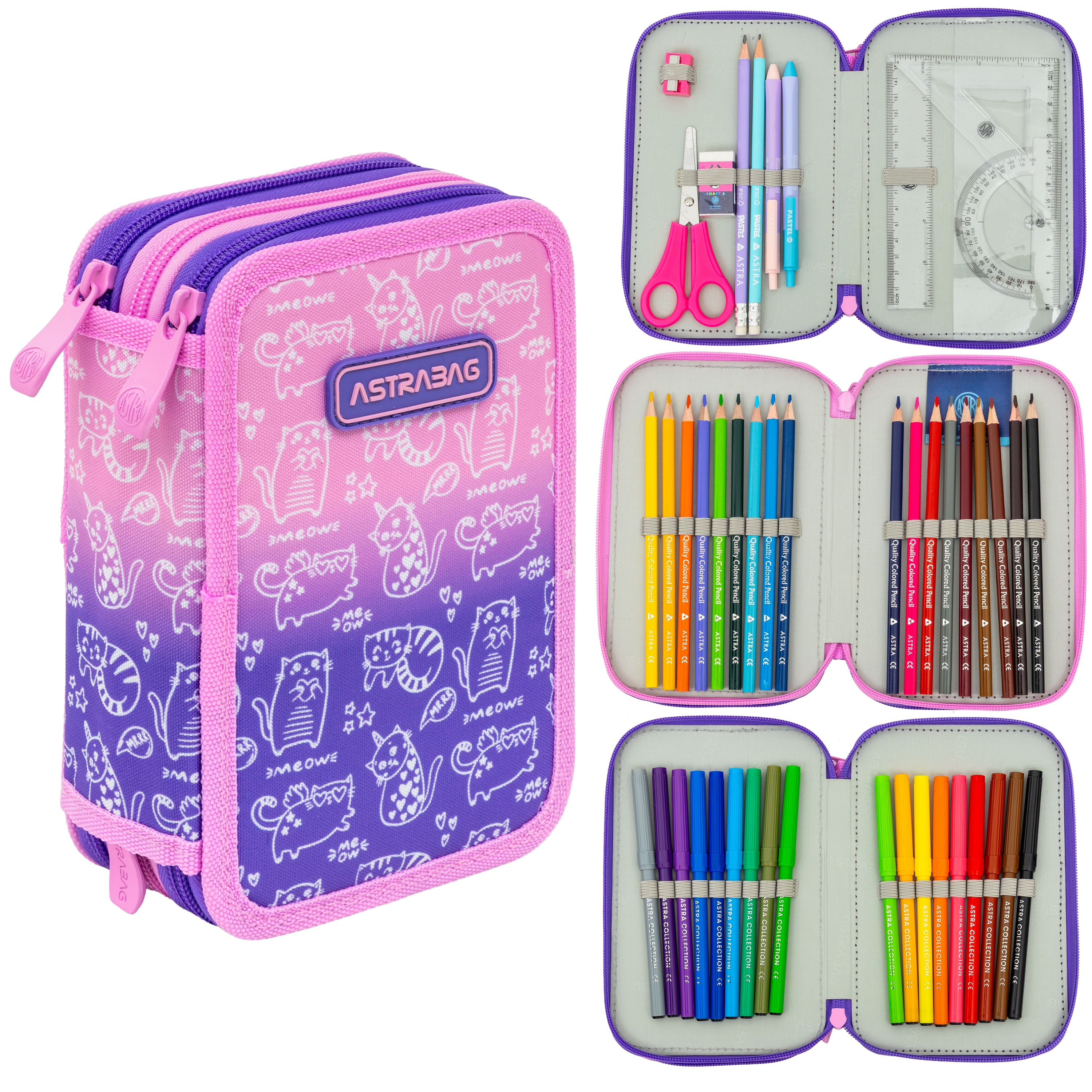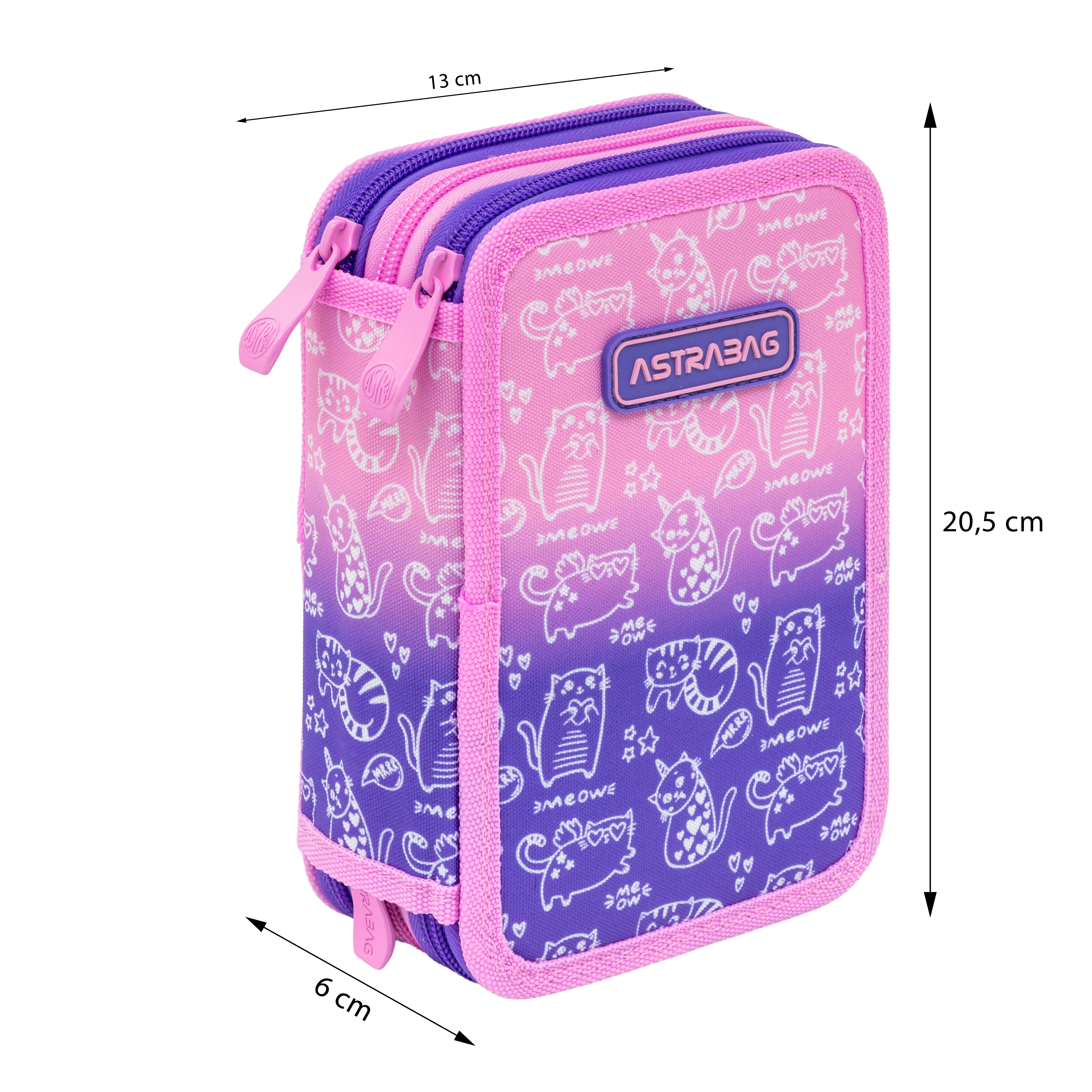 Astrabag, Piórnik Jumbo potrójny z wyposażeniem - Kitty, AC31
