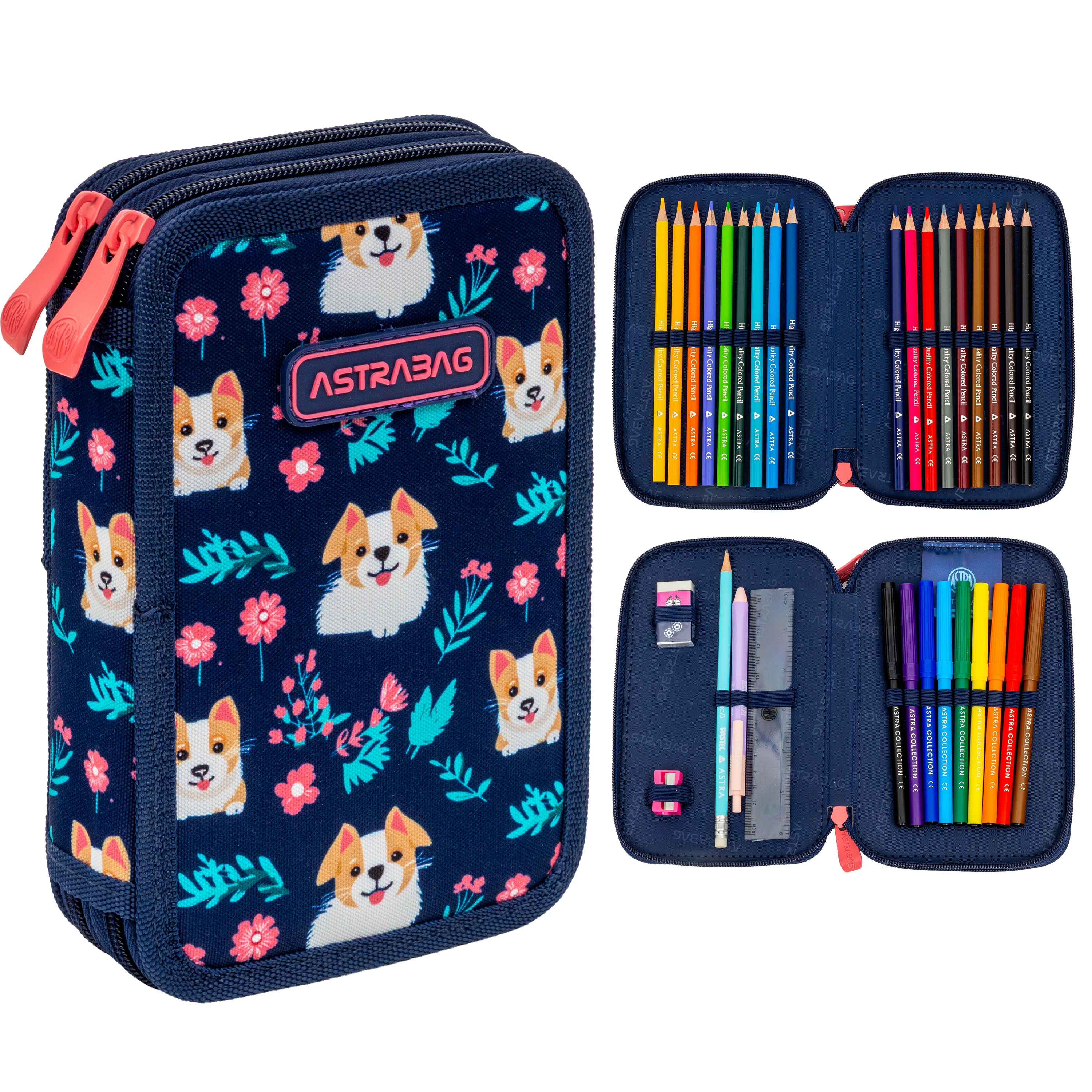 Astrabag, Piórnik podwójny z wyposażeniem - Dear Puppy, AC21