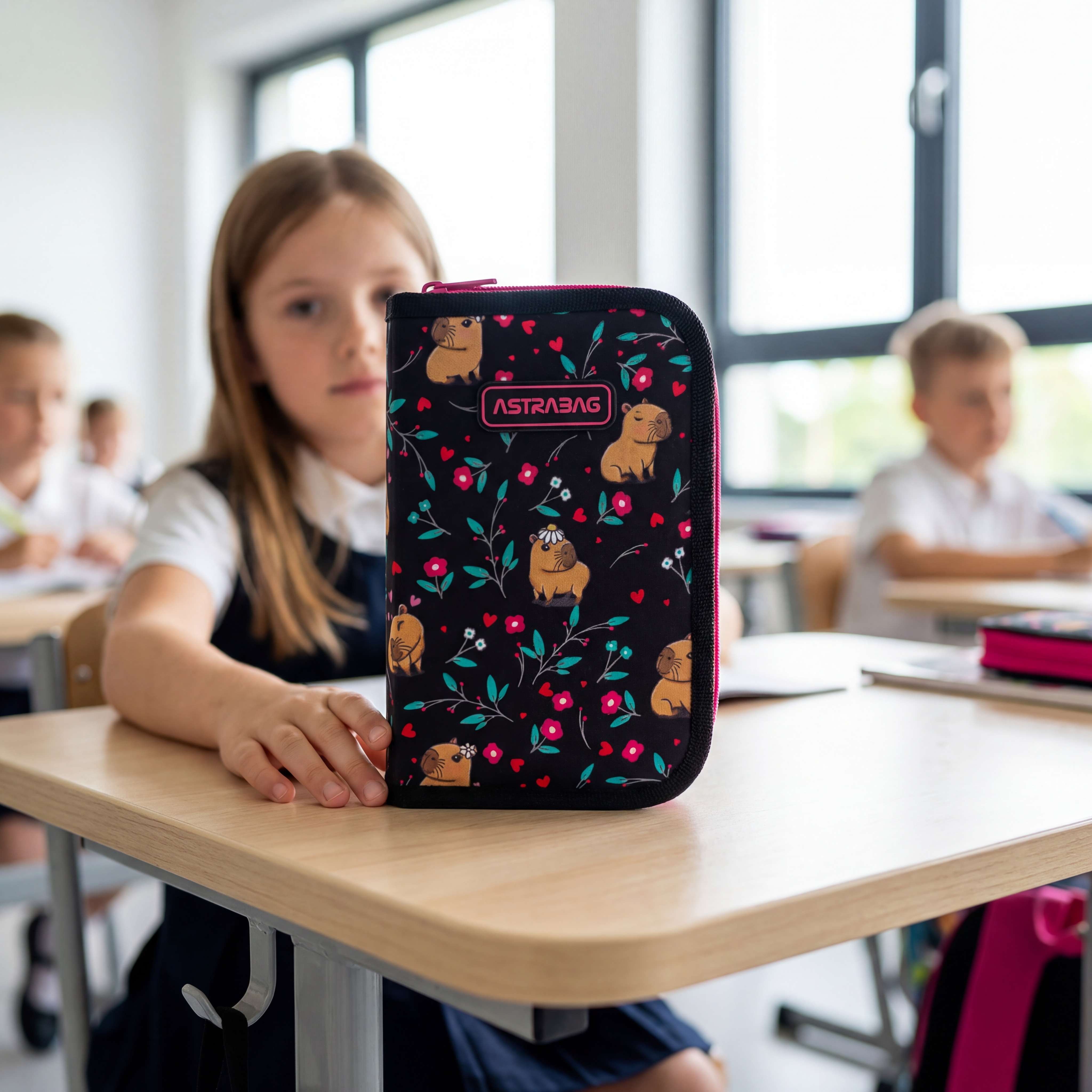 Szczegóły: Astrabag, Piórnik pojedynczy dwuklapkowy bez wyposażenia - Flower Capy, AC1