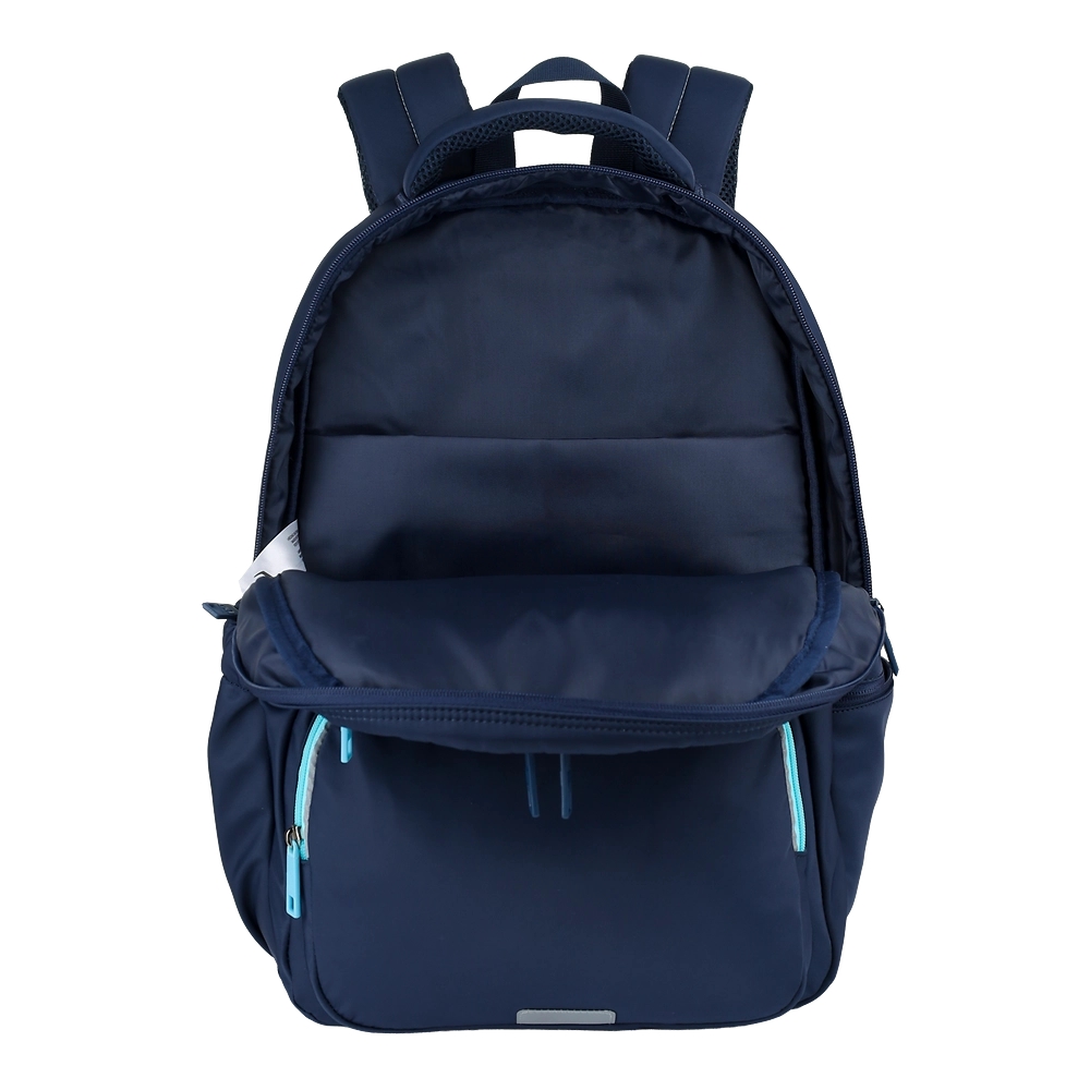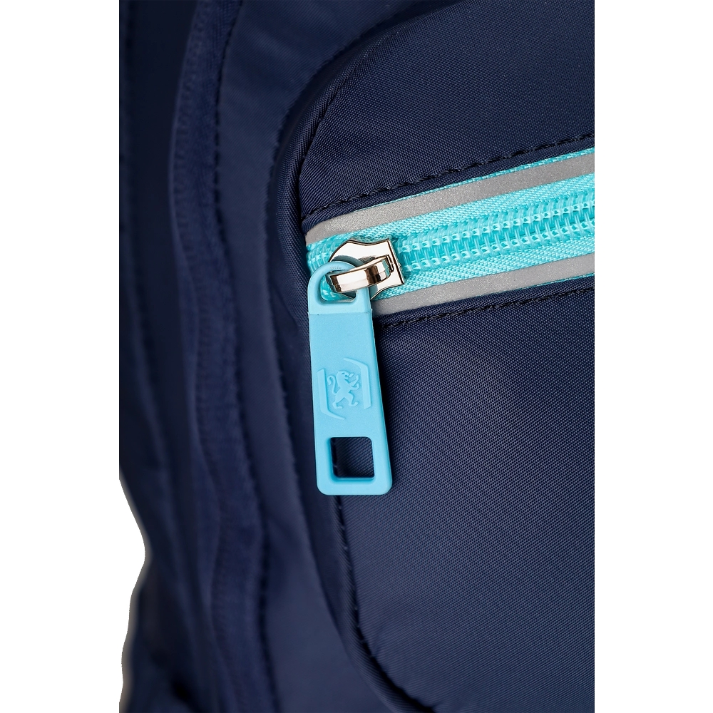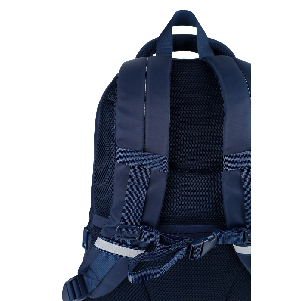 Plecak wyposażono również w praktyczne kieszenie zewnętrzne – w tym na bidon, drobiazgi oraz przednie kieszenie zamykane na suwak – które ułatwiają szybki dostęp do najpotrzebniejszych rzeczy. Komfort użytkowania zapewniają miękkie, wentylowane plecy z pianką i wyprofilowane szelki, a odblaskowe elementy zwiększają widoczność po zmroku. To plecak, który łączy ekologiczną świadomość z codzienną wygodą i niezawodną trwałością.