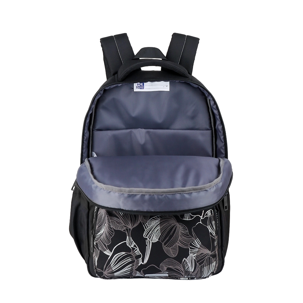 Plecak Oxford Dream Tech to połączenie nowoczesnego designu, funkcjonalności i dbałości o środowisko. Wykonany z recyklingowanego poliestru, jest wytrzymały i przyjazny dla planety. Stylowy wzór z delikatnym motywem kwiatowym nadaje mu elegancki, a zarazem młodzieżowy charakter. Dwie przestronne komory ułatwiają organizację książek, zeszytów i dokumentów, a usztywniona kieszeń w tylnej części plecaka chroni laptopa o przekątnej do 16 cali. Praktyczne rozwiązania, takie jak kieszenie na bidon, drobiazgi i akcesoria, zwiększają funkcjonalność plecaka, a miękkie plecy z pianką i przewiewną siatką gwarantują wygodę nawet przy dłuższym noszeniu. Całość uzupełniają odblaskowe nici poprawiające widoczność po zmroku oraz solidne gumowe nóżki, które chronią dno plecaka przed zabrudzeniami i przetarciami. Dream Tech to idealny wybór dla wymagających użytkowników, którzy szukają plecaka wygodnego, trwałego i zaprojektowanego z troską o środowisko.