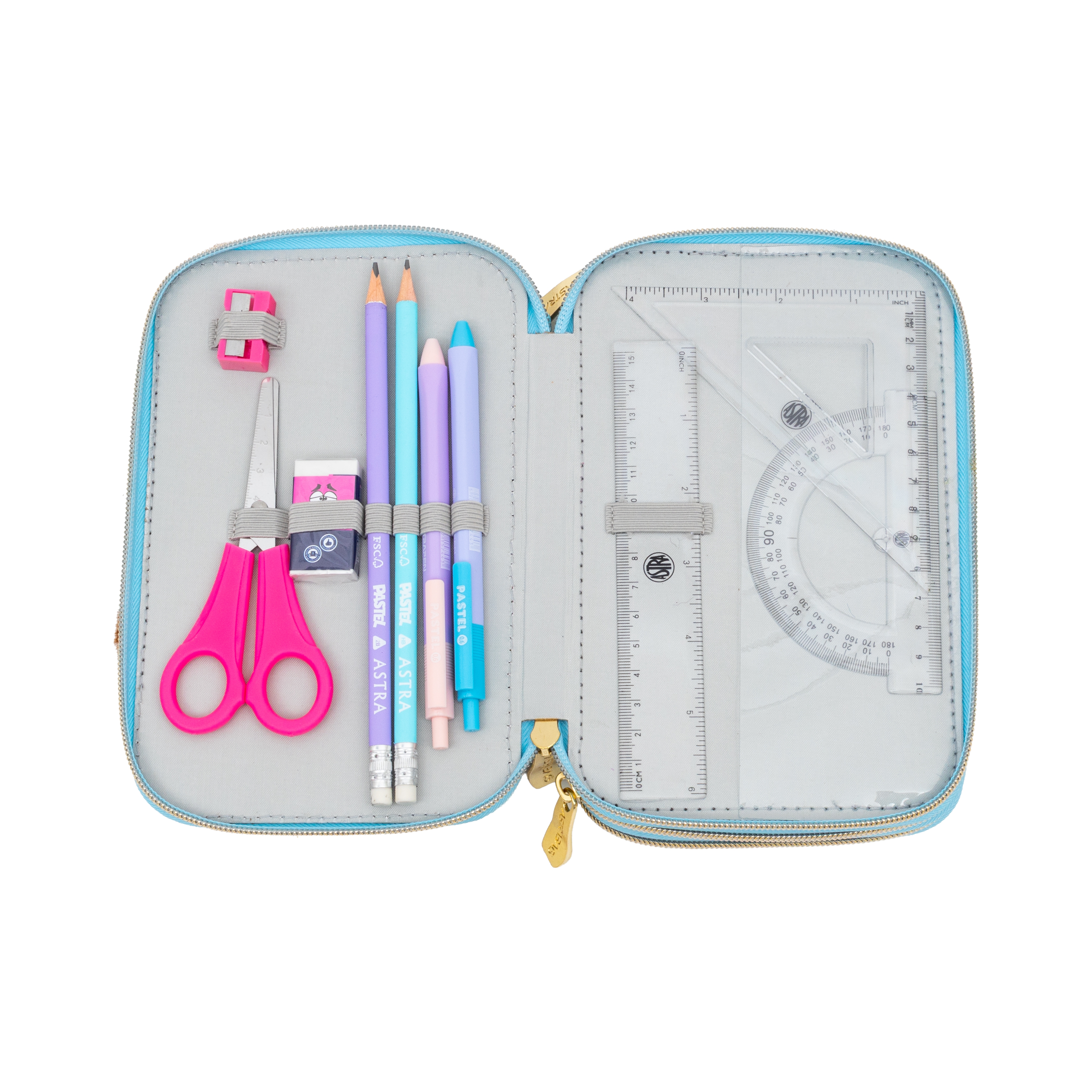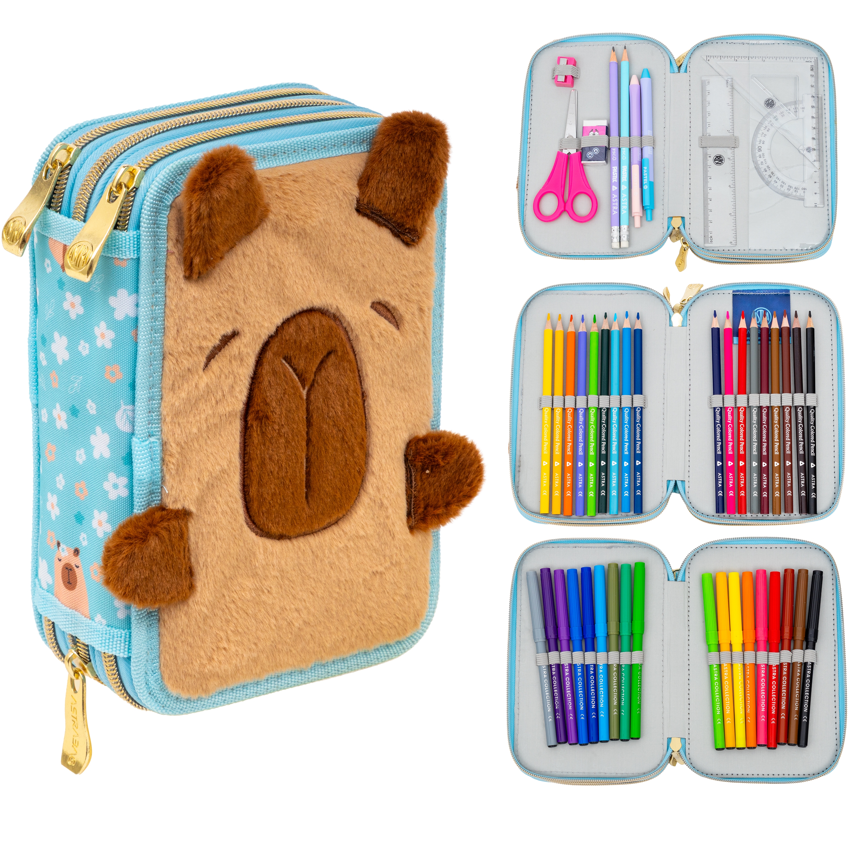 Astrabag, Piórnik Jumbo potrójny z wyposażeniem - Fluffy Capy, AC31
