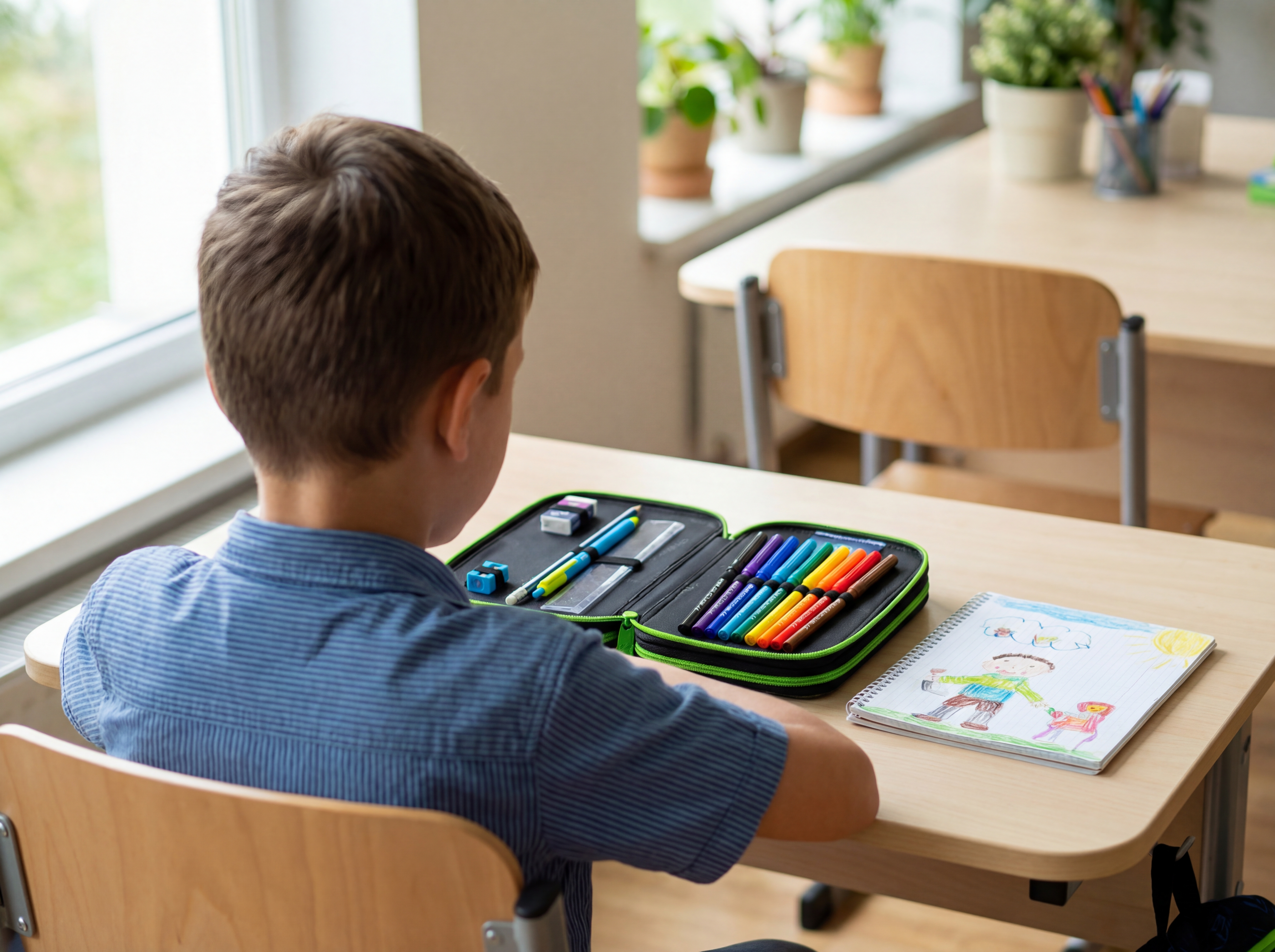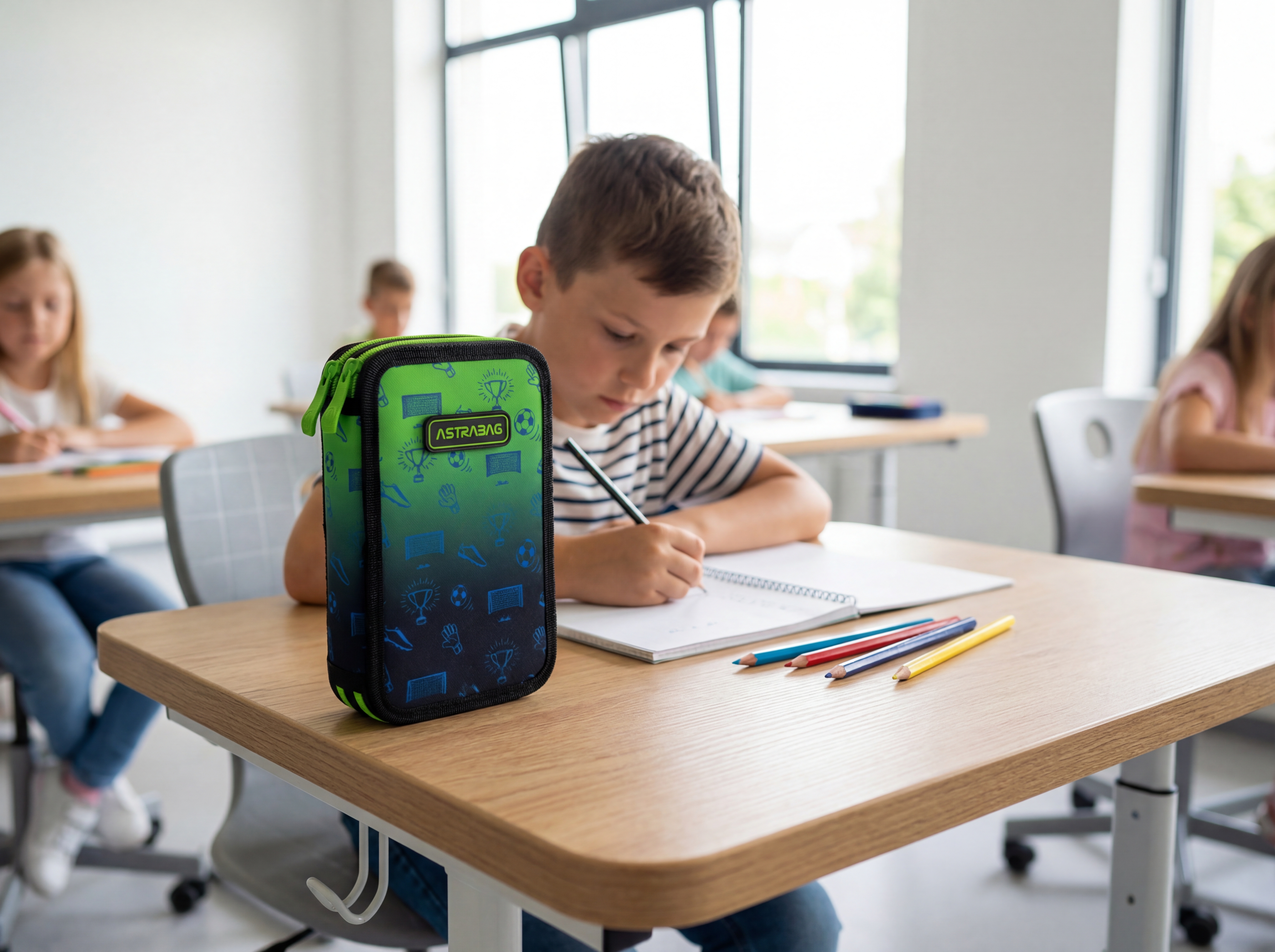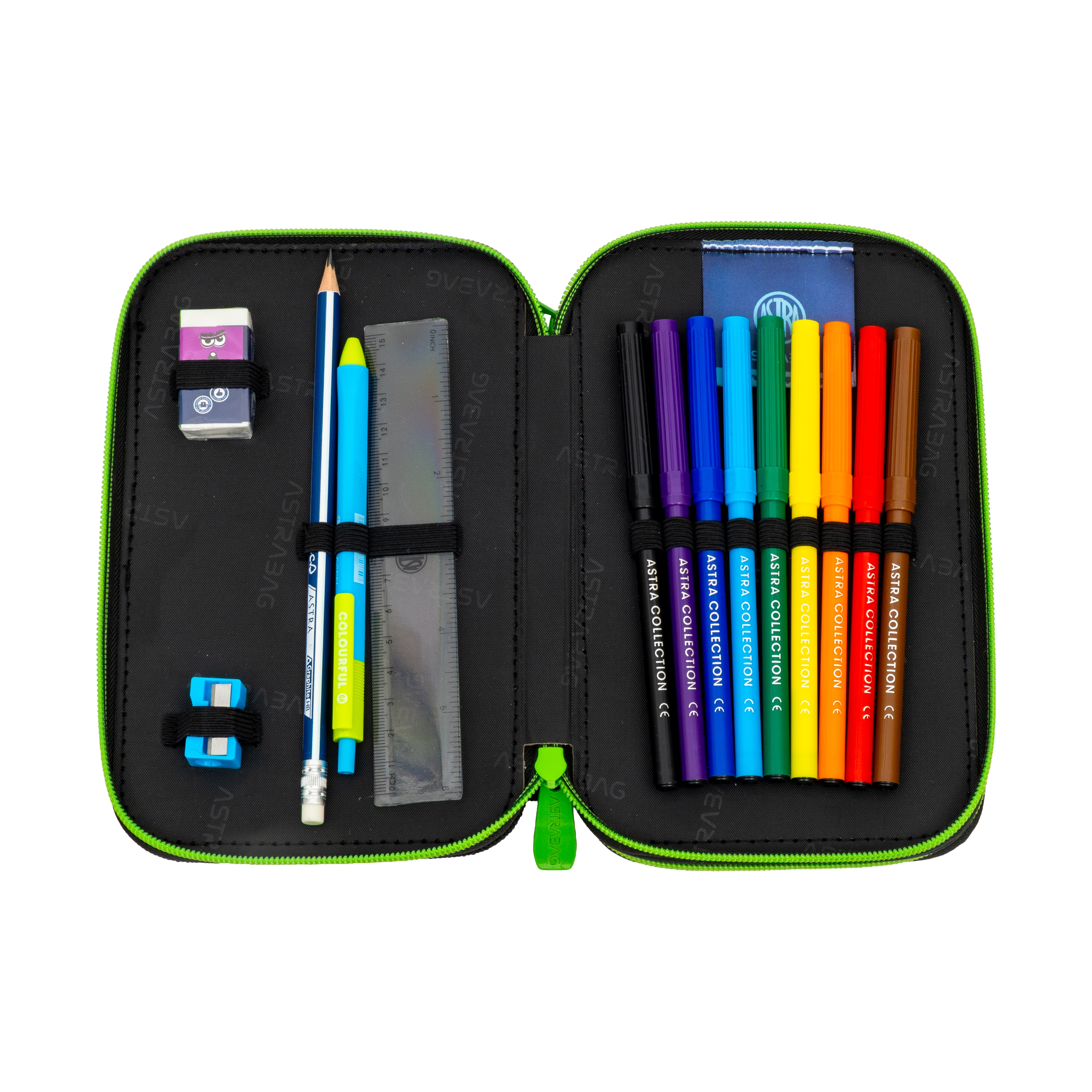 Opis: Astrabag, Piórnik podwójny z wyposażeniem - Ombre Football, AC21