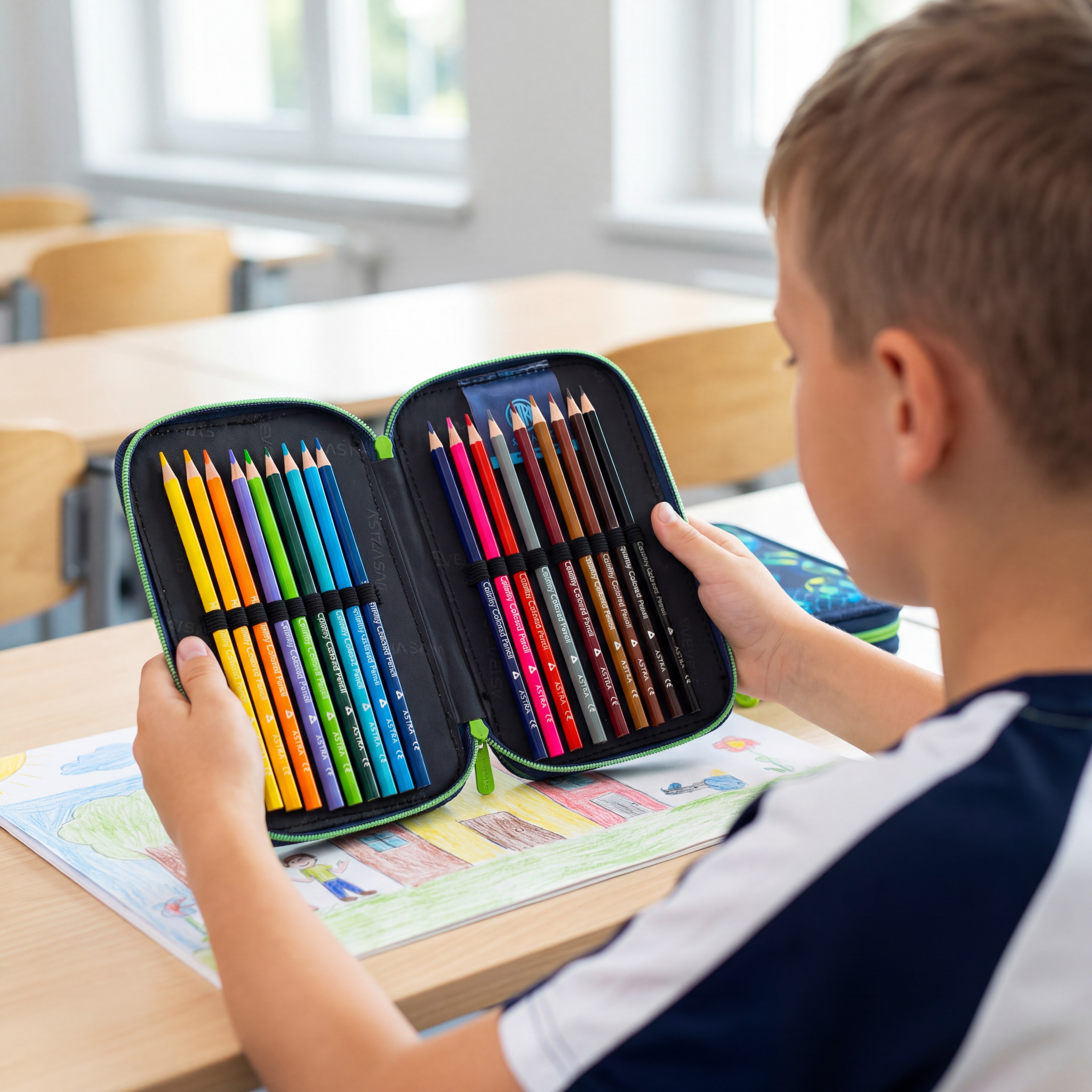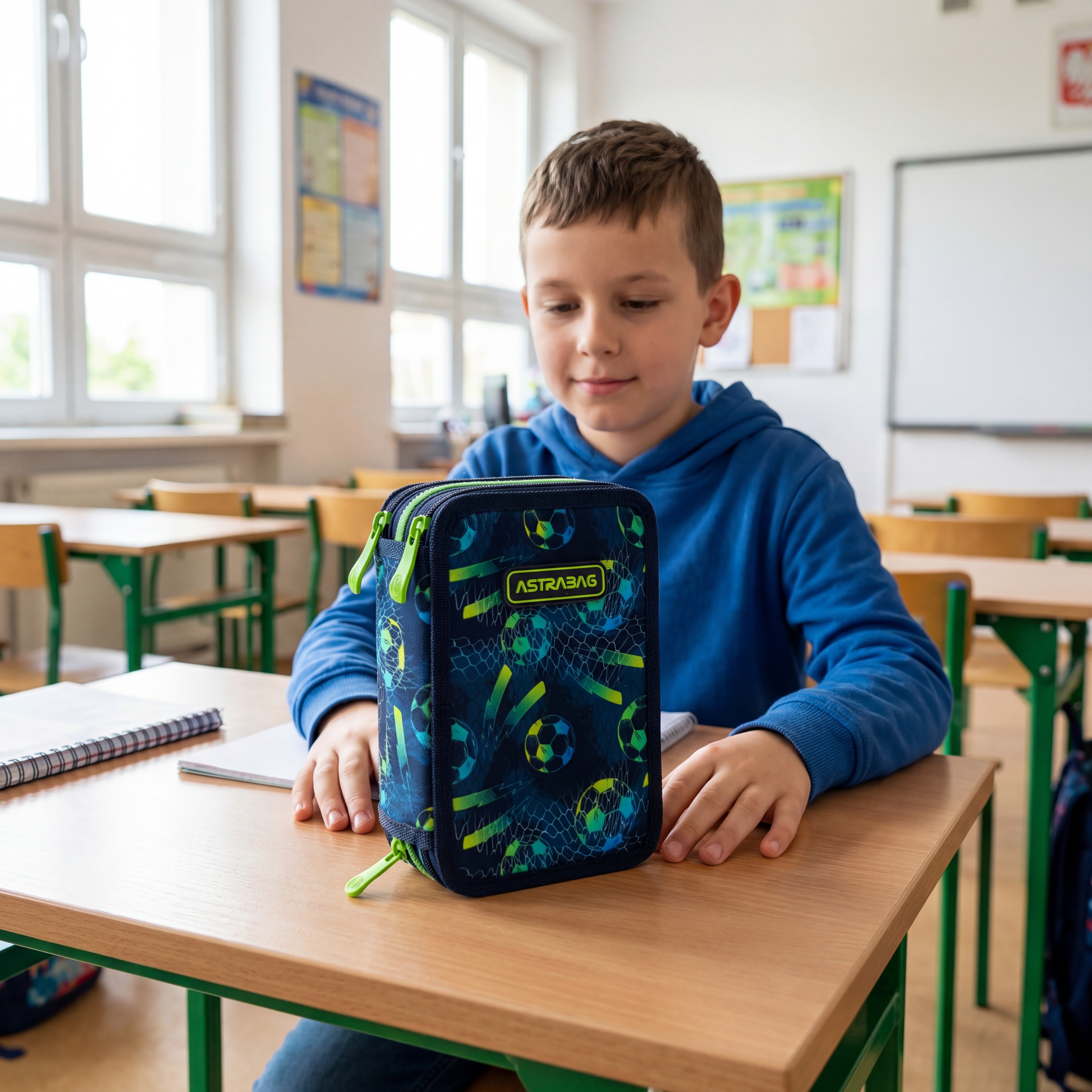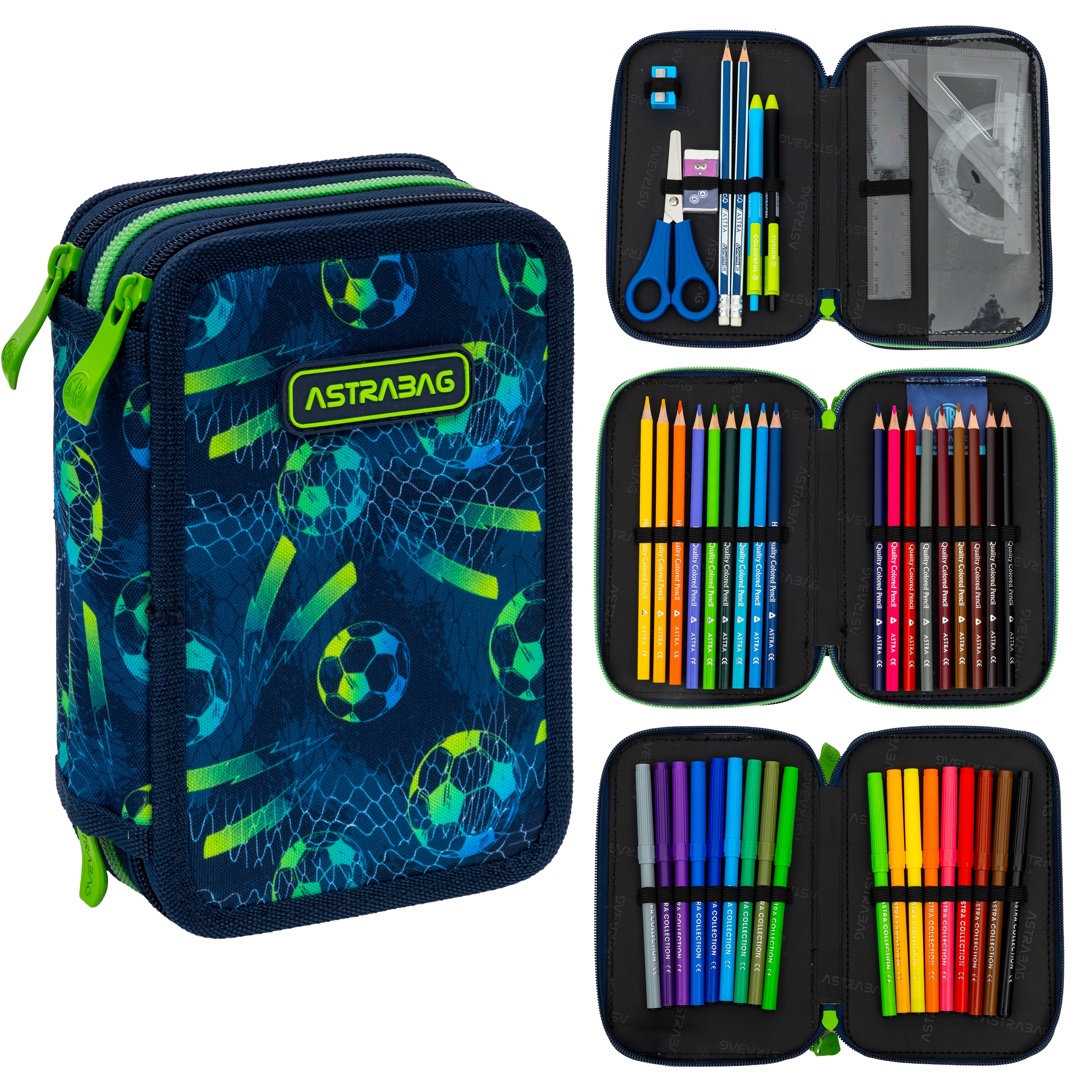 Opis: Astrabag, Piórnik Jumbo potrójny z wyposażeniem - Football, AC31