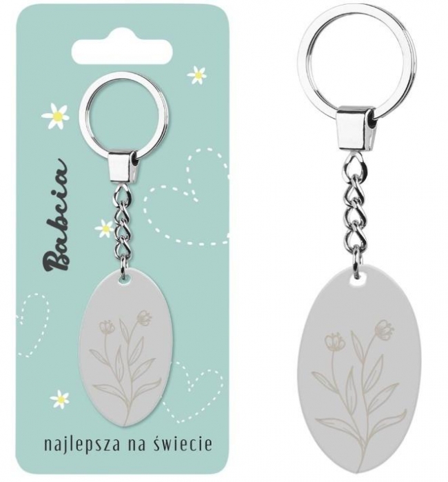 Brelok do kluczy dla Babci z napisem BABCIA NAJLEPSZA NA ŚWIECIE i delikatnym grawerem kwiatowym