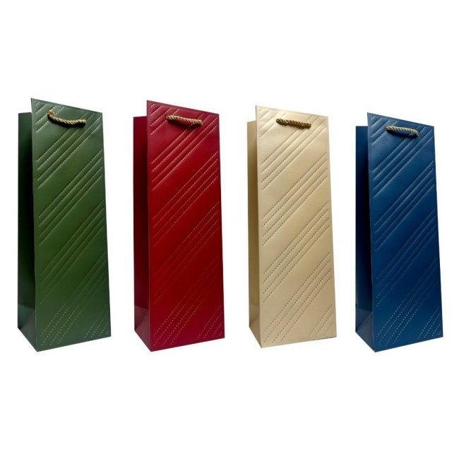 Elegancka papierowa torebka prezentowa na wino wykonana z grubszego papieru o gramaturze 210 g, co zapewnia jej większą trwałość i odporność na obciążenie. Wyposażona w elegancki sznurek, który zapewnia wygodny uchwyt i estetyczne wykończenie.