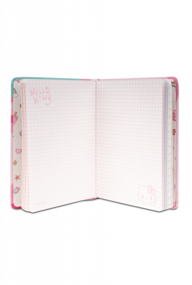 - bajeczne, kolorowe tło – słodkie motywy Hello Kitty rozsypane po całej stronie (serduszka, kokardki, mini Kitty) – super do kreatywnych notatek, rysunków i doodli