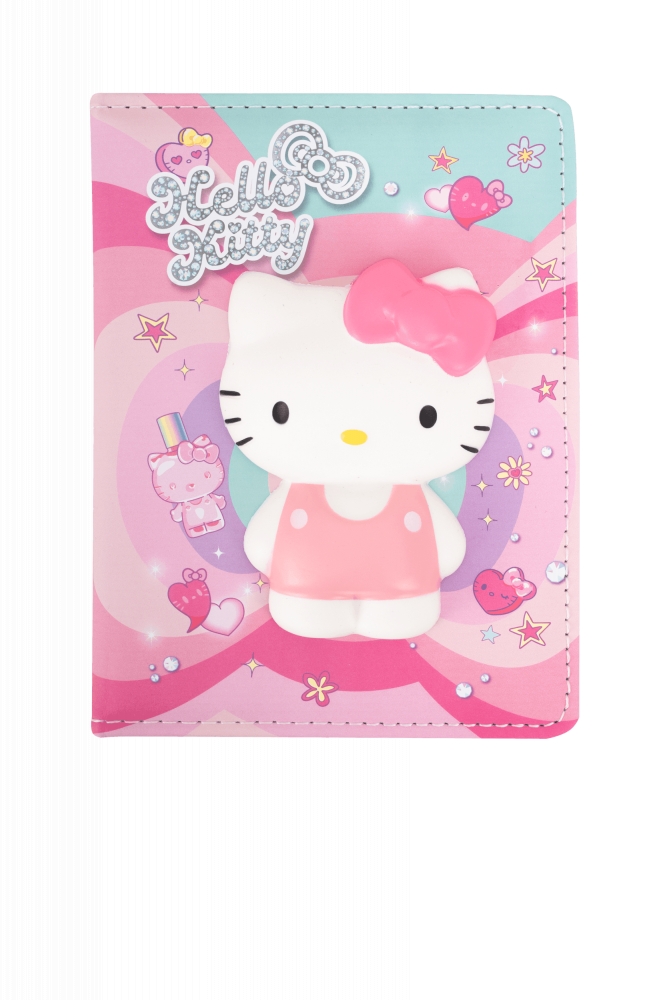 - Prawdziwa, 3D squishy postać Hello Kitty na okładce – wypukła, mięciutka, delikatnie się ugniata i od razu wraca do kształtu
