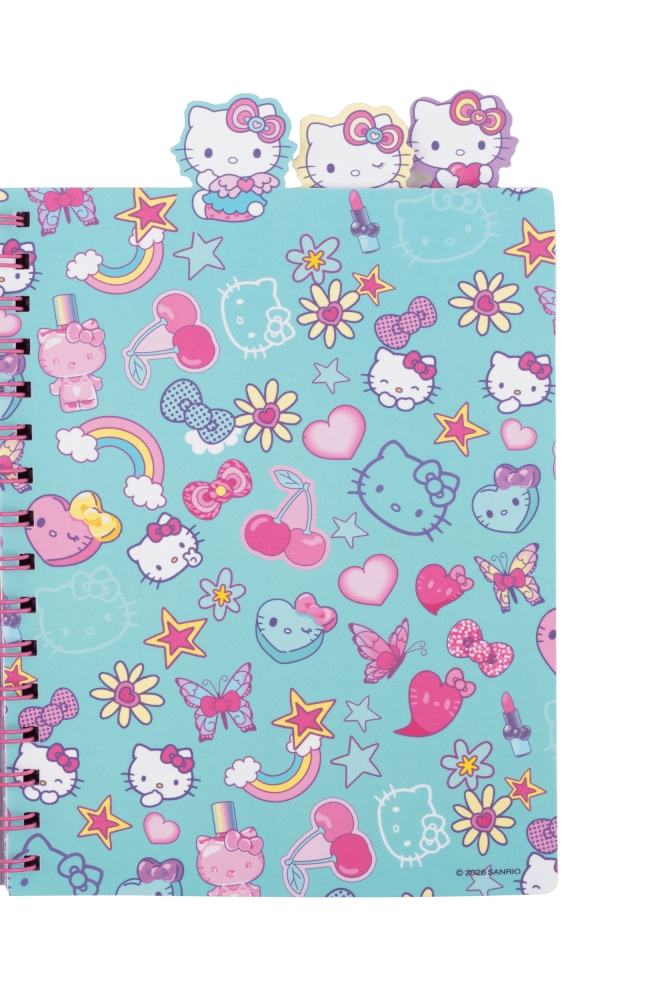 - Zakładki typu heads z bajkowymi buźkami Hello Kitty – każda zakładka to mała, uśmiechnięta główka Hello Kitty (i przyjaciółek!) – ułatwia szybkie odnajdywanie sekcji, wygląda mega uroczo i dodaje charakteru całemu notesowi
