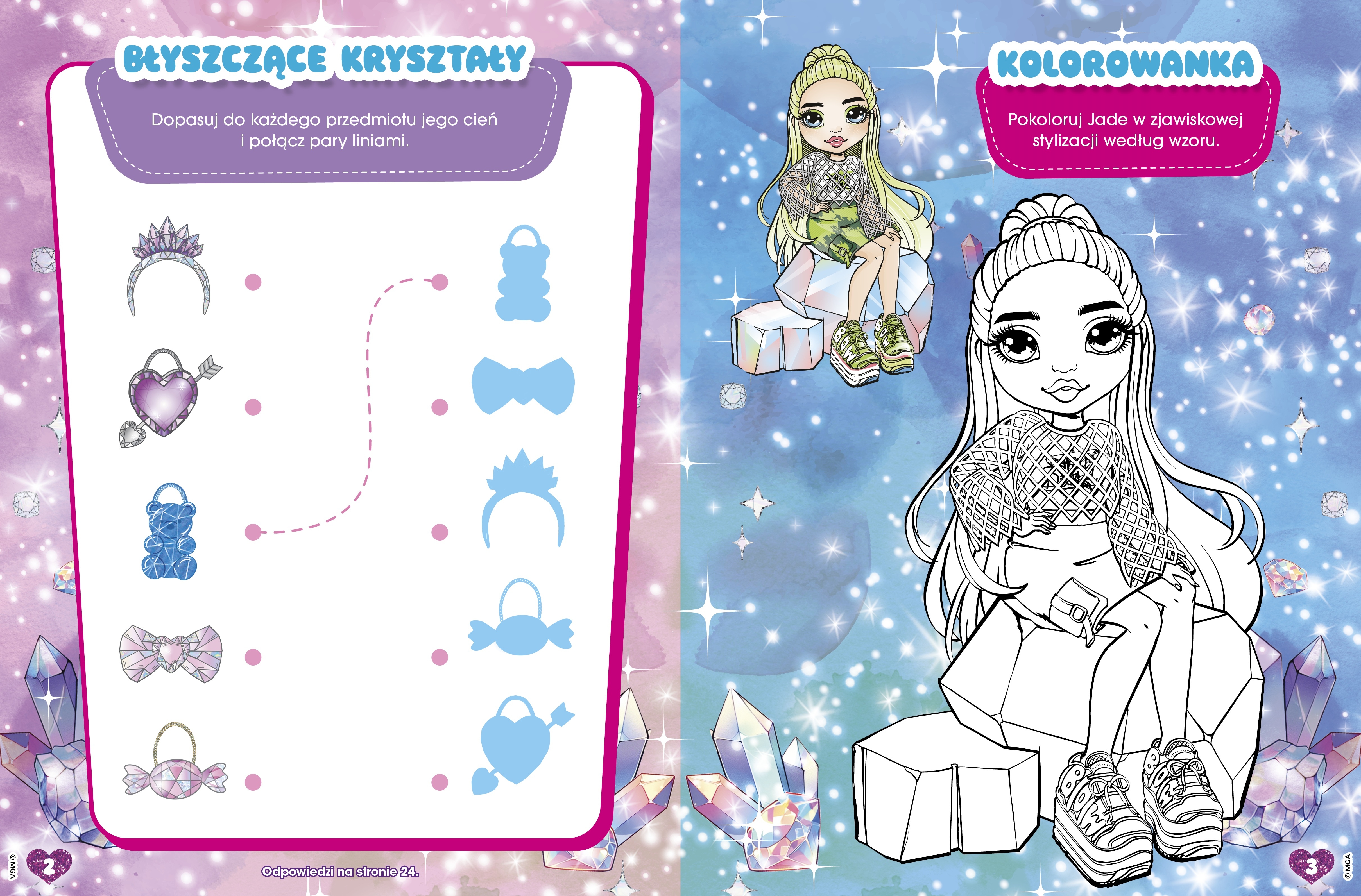 Dołącz do uczennic Rainbow High i odkryj świat pełen mody, sztuki i niezwykłych pomysłów. W książce znajdziesz różnorodne zadania, które pobudzają kreatywność i pozwalają zanurzyć się w wyjątkowy, kolorowy styl tej niezwykłej szkoły.