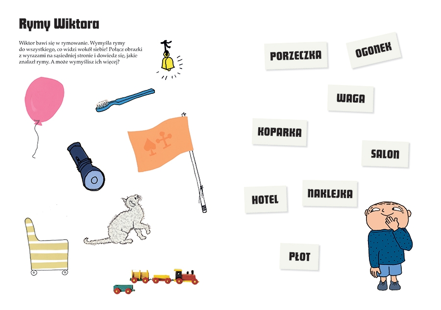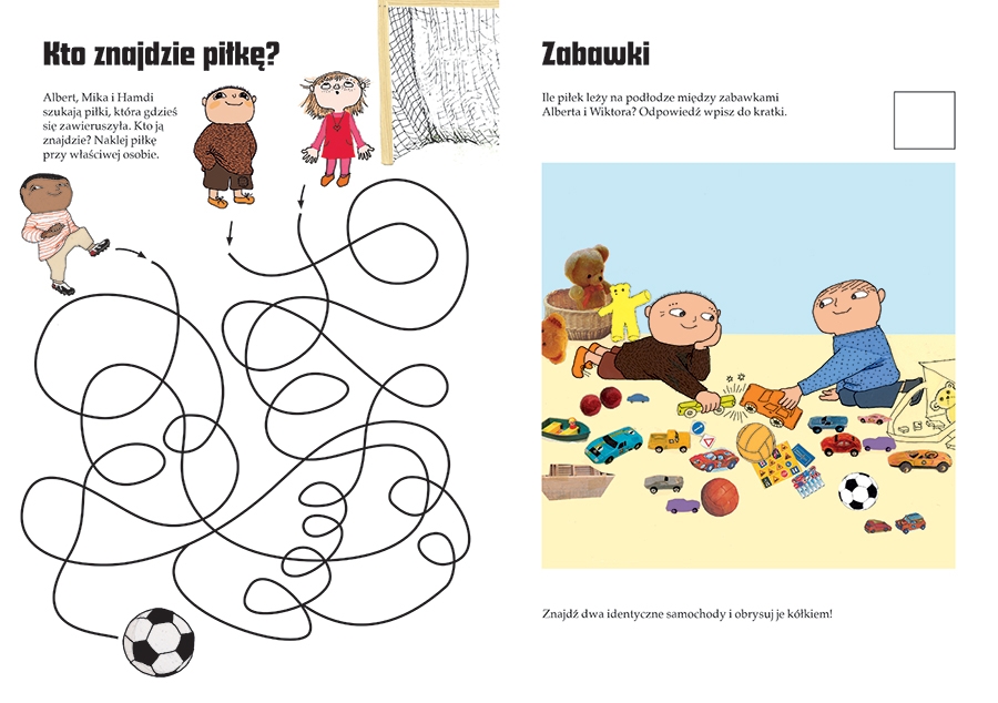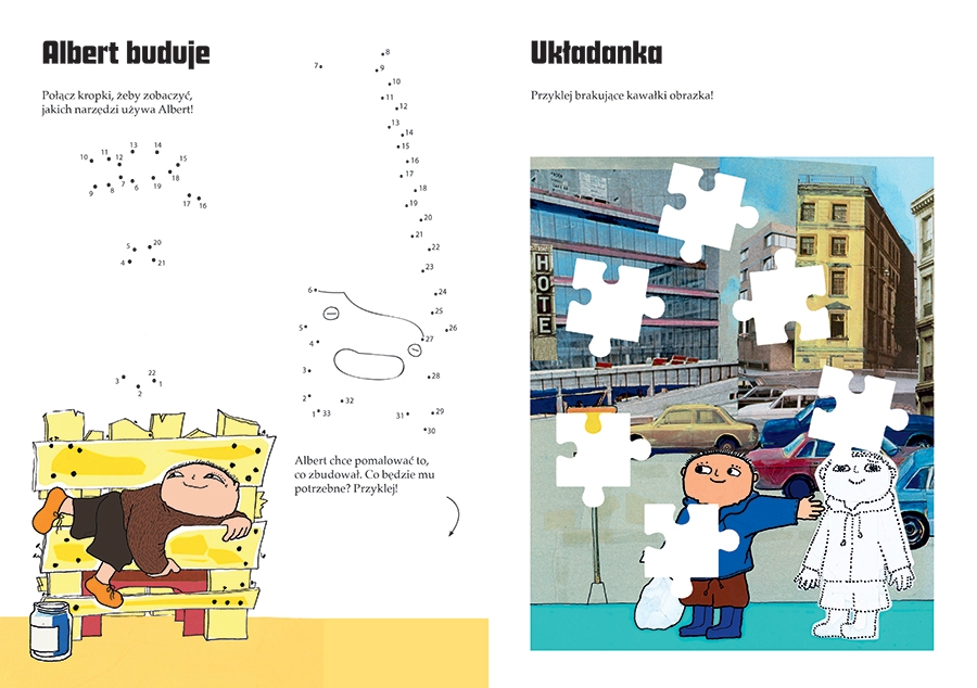 W tym zeszycie zadań i łamigłówek spotkasz Alberta Albertsona oraz bliskie mu osoby: tatę, Mikę, Wiktora, Hamdiego, babcię, ciocię i oczywiście Molgana. Albert jest pomysłowy i wszystko go ciekawi – wynajduj z nim szczegóły, klucz po labiryntach, baw się słowami, dopasowuj elementy, łącz punkty, rysuj, koloruj i przyklejaj naklejki!