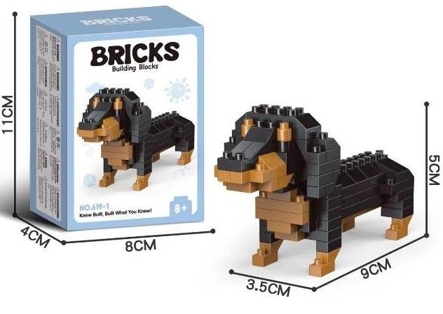 Ten wyjątkowy zestaw klocków to doskonały sposób na połączenie pasji do modelarstwa z miłością do czworonogów. Figurka przedstawiająca jamnika została zaprojektowana tak, aby wiernie oddać najważniejsze cechy tej popularnej rasy. Dzięki przemyślanej konstrukcji i zastosowaniu klocków w kolorze głębokiej czerni oraz ciepłego brązu, gotowy model prezentuje się niezwykle estetycznie i realistycznie. Proces składania figurki dostarcza mnóstwo satysfakcji, angażując zarówno dzieci, jak i dorosłych kolekcjonerów. Budowanie z klocków to sprawdzony sposób na relaks, ćwiczenie koncentracji oraz doskonalenie precyzji ruchów. Gotowy piesek będzie dumnie prezentować się w każdym wnętrzu, przyciągając wzrok i wywołując uśmiech. Zestaw jest zapakowany w estetyczne pudełko, co sprawia, że idealnie nadaje się na prezent dla każdego fana kreatywnych wyzwań i wiernych towarzyszy na czterech łapach.