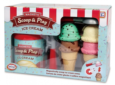 Lody dla wszystkich! Gdy tylko dasz dzieciom możliwość zabawy tym zestawem, nie będą chciały go odłożyć. Magnetyczne połączenie pozwala dzieciom łatwo nabierać lody i umieszczać je na wafelku. A co lepsze, gałki będą mocno trzymać się wafelka. Cztery pyszne smaki uwalniają wyobraźnię i kreatywność w tym 9-częściowym zestawie MalbBlo MAGNETIC Lodziarnia.