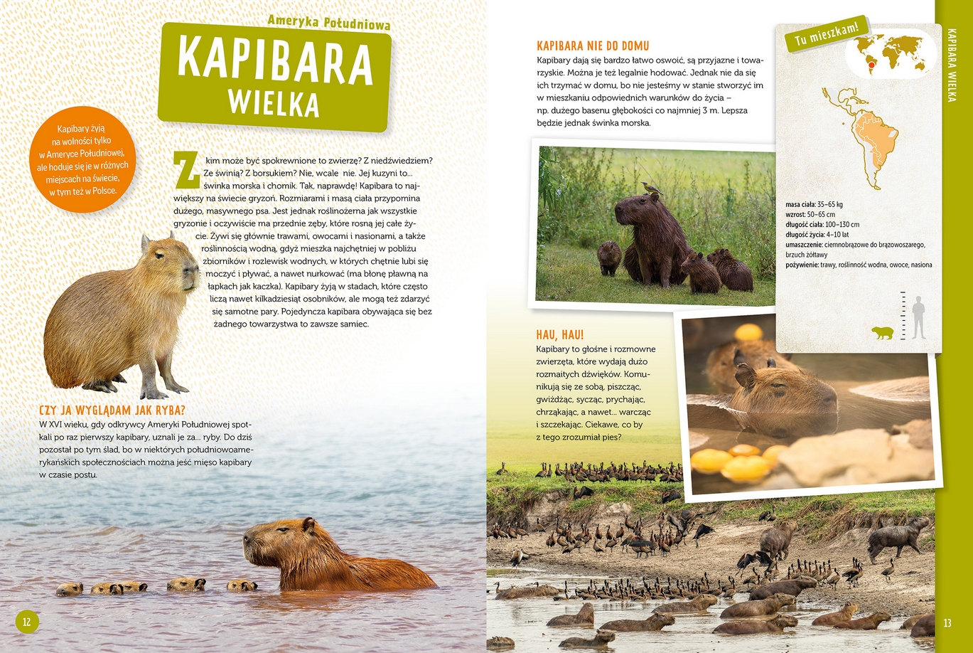 Czy wiecie, że kapibara ma między palcami błonę pławną niczym kaczka, a jej kuzynami są świnka morska i chomik?