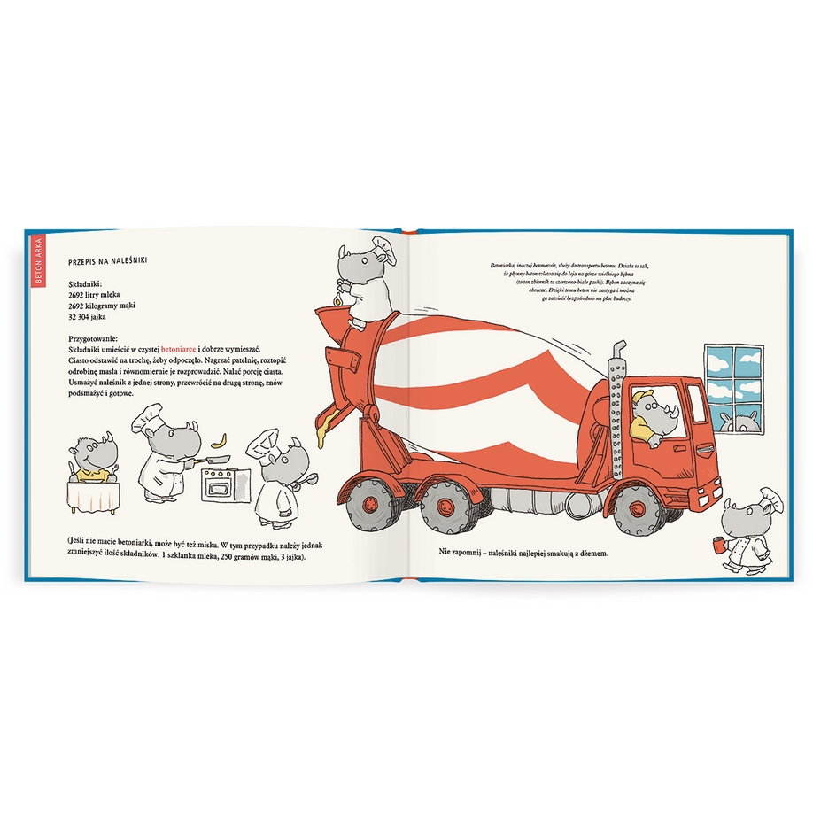 Trzeba wydostać owce z wykopu? Przewieźć pianino na pastwisko? Zebrać śmieci z dna jeziora? Na pewno znajdzie się maszyna, która to potrafi! Znajdziecie tu nie tylko urządzenia często spotykane, jak spycharka, kombajn czy dźwig, ale też mniej znane, jak koparka pływająca czy wóz bramowy. Realistyczne rysunki maszyn, sympatyczni zwierzęcy bohaterowie i humorystyczne sytuacje nie tylko rozbawią małych budowlańców, mechaników i kierowców, ale też zachęcą ich do wymyślania własnych opowieści i zabaw.Kraj produkcji: PL