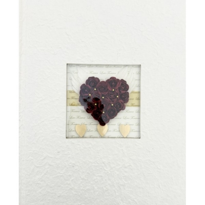 Centralnym elementem okładki jest ozdobna aplikacja z motywem serca ułożonego z czerwonych róż, wzbogacona delikatnymi skrzydłami oraz subtelnymi złotymi akcentami. Tło z romantycznym napisem „Love Forever” nadaje całości ciepły, sentymentalny wyraz.