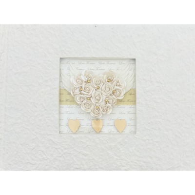 Centralnym elementem okładki jest dekoracyjna aplikacja z motywem serca ułożonego z jasnych, kremowych róż, ozdobiona subtelnymi złotymi akcentami oraz delikatnymi skrzydłami. Tło z romantycznym napisem „Love Forever” nadaje całości ciepłego, sentymentalnego charakteru. Dolną część kompozycji uzupełniają trzy złote serduszka, harmonijnie współgrające z naturalnym stylem albumu.