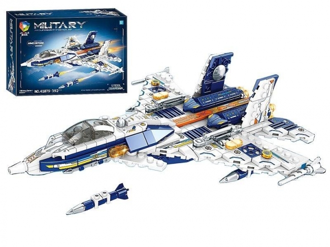 Zestaw klocków - model samolotu myśliwskiego, z podstawką, 24,8x20,8x6,2cm; 36x25x8cm, Box