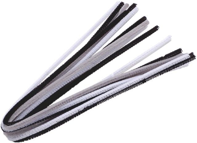 Opakowanie zawiera 10 sztuk drucików w trzech kolorach, białym, czarnym i popielatym. Długość 50 cm. Średnica 6 mm.
