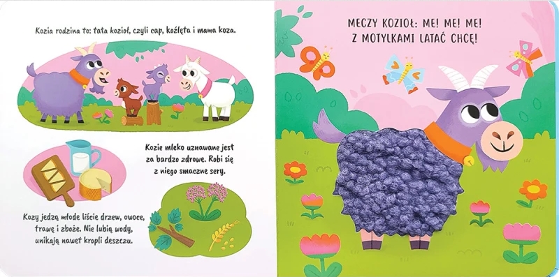 Co to jest galop? Dlaczego koń ma podkowy? Co to jest redyk? Czy cap to mąż kozy? Po co indykowi korale? W tej książce można dotknąć futerek wiejskich zwierząt, a także znaleźć wiele ciekawych informacji o nich. Zapraszamy na spotkanie z konikiem, owcą, świnią, indykiem i kozą. Stymuluj zmysły i wzbogacaj wiedzę dziecka! Dotykaj futerek i poznawaj zwierzęta!Kraj produkcji: PL