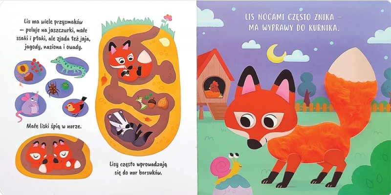Co to jest gawra? Czyje dzieci to warchlaki? Co jedzą gąsienice? Czy borsuki dzielą nory z lisami? W tej książce można dotknąć futerek leśnych zwierząt, a także znaleźć wiele ciekawych informacji o nich. Zapraszamy na spotkanie z niedźwiedziem, lisem, motylkiem, dzięciołem i dzikiem. Stymuluj zmysły i wzbogacaj wiedzę dziecka! Dotykaj futerek i poznawaj zwierzęta!Kraj produkcji: CN