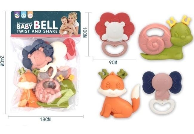 Educational Baby Bell Twist and Shake to wyjątkowy zestaw edukacyjny, który towarzyszy dziecku w najważniejszych etapach wczesnego rozwoju. W skład kompletu wchodzą cztery starannie wykonane zabawki w kształcie przyjaznych zwierzątek, które natychmiast przyciągają uwagę niemowlęcia łagodną kolorystyką i sympatycznym designem. Projektanci skupili się na połączeniu funkcji rozrywkowej z terapeutyczną, oferując dziecku bogactwo doznań sensorycznych.