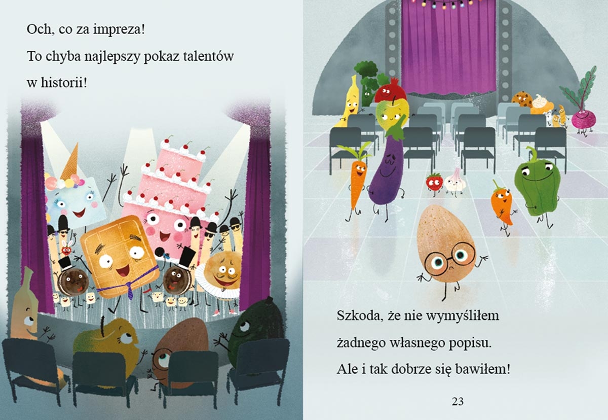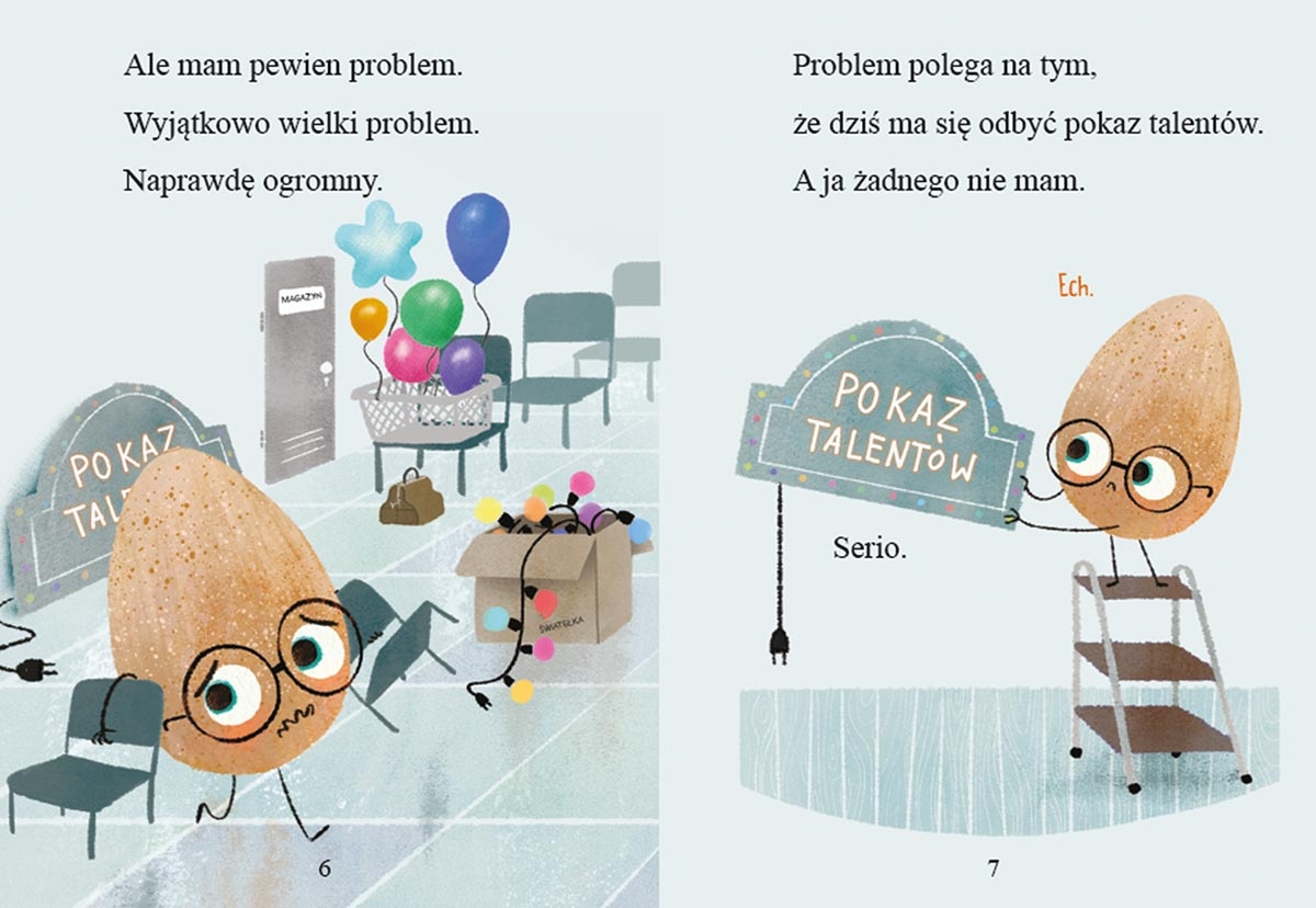 Wzorowe Jajo ma nie lada problem. Zbliża się pokaz talentów, w którym wezmą udział koleżanki i koledzy ze sklepu. Muffiny wystawiają sztukę. Makaron ćwiczy jogę. Ciastka przygotowały magiczne sztuczki. Każdy ma jakiś talent, który może zaprezentować. Jajo tymczasem… jest dobre, a nawet wzorowe, ale nic poza tym. Czy można to pokazać w blasku reflektorów? Gdy pokaz się rozpoczyna, Wzorowe Jajo zasiada na widowni. Po chwili jednak okaże się, że będzie miało w pokazie do odegrania bardzo ważną, o ile nie najważniejszą rolę. Jak bohater odkryje swój talent? I na czym polega jego dar?