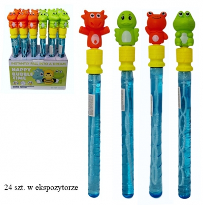 Zestaw baniek mydlanych pod postacią kolorowego miecza. Miecz zakończony zabawnym zwierzątkiem. Posłuży dzieciom do tworzenia kilku baniek na raz. Towar dostępny w kilku wersjach, wybierany losowo. Cena dotyczy jednej sztuki. Produkt dla dzieci od 3 lat. #