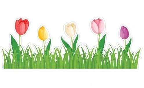 Zestaw składa się z 4 pasów tulipanów na trawie, które można złożyć w jeden ciąg - idealne do dekoracji szkoły i przedszkola.