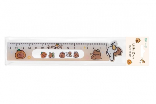 Praktyczna i urocza linijka o długości 15 cm, ozdobiona wizerunkiem kapibary. Wyróżnia się ruchomymi motywami, które nadają jej unikalny charakter. Idealna dla miłośników kapibar i oryginalnych przyborów szkolnych.