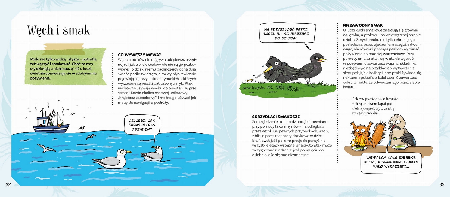 Piękne ilustracje, ciekawostki i przystępny język sprawiają, że dzieci nie tylko poznają różnorodność ptaków – tych żyjących w Polsce i na całym świecie – lecz także uczą się je rozpoznawać i rozumieć.
