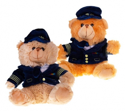 Do wyboru dwa odcienie brązu. Miś ma na sobie czarny uniform pilota z uroczym napisem na czapce Kapitan Miś. Całość została wykonana z dbałością o szczegóły i wygląda bardzo elegancko.