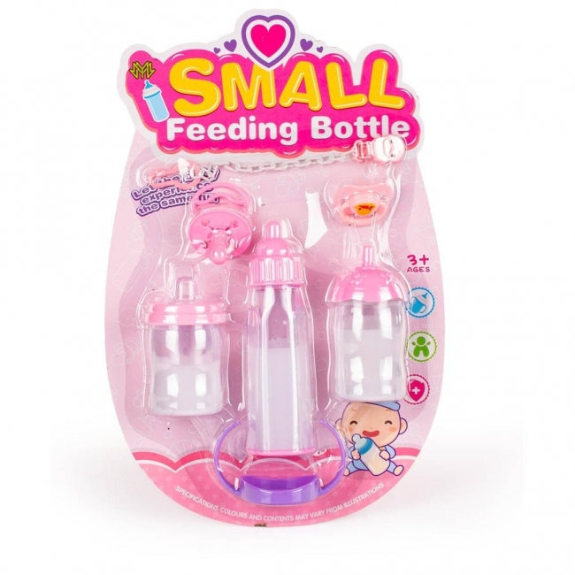 Zawartość zestawu: 3 butelki z magicznym płynem, 2 smoczki i łańcuszek z klipsem