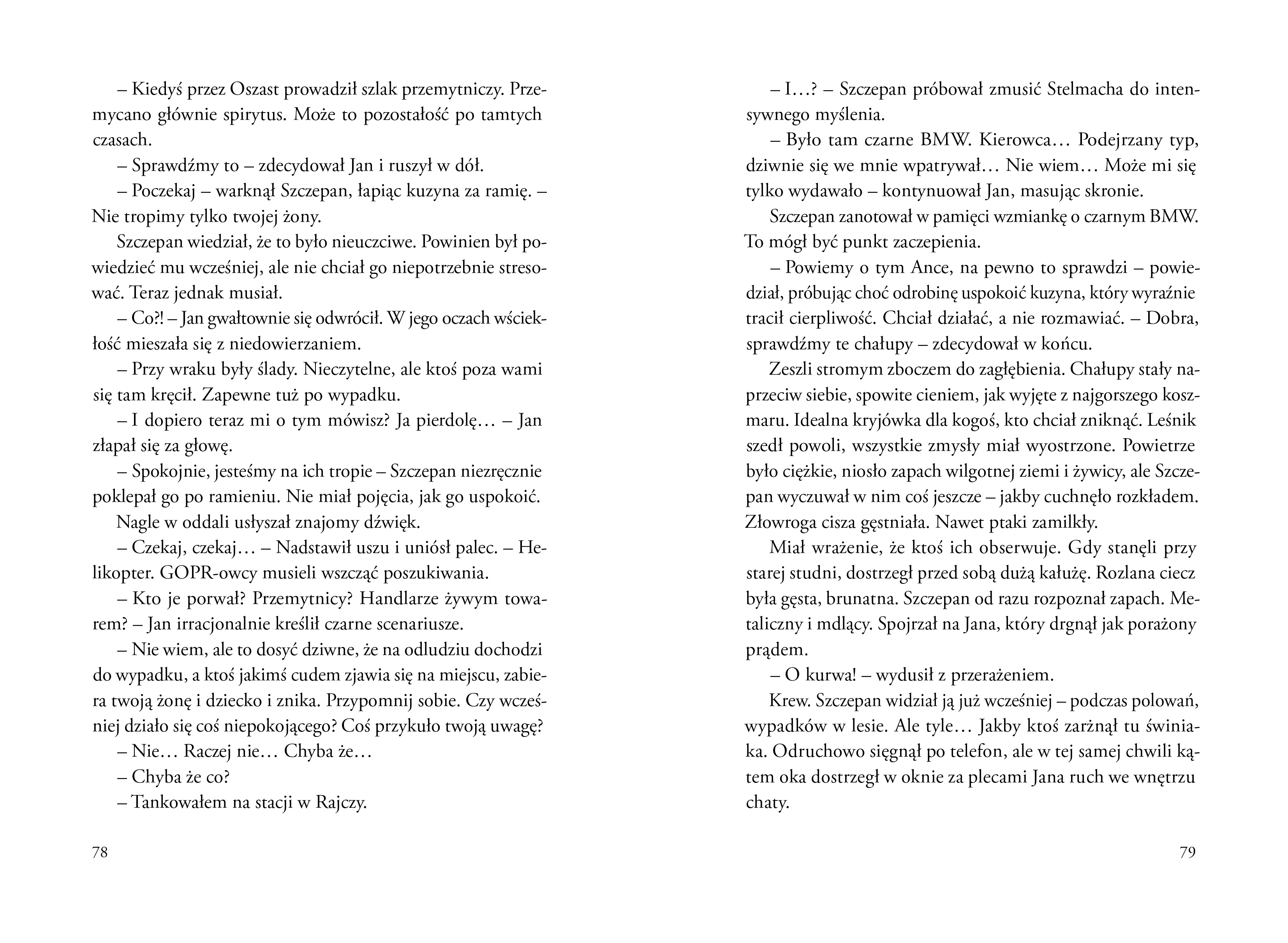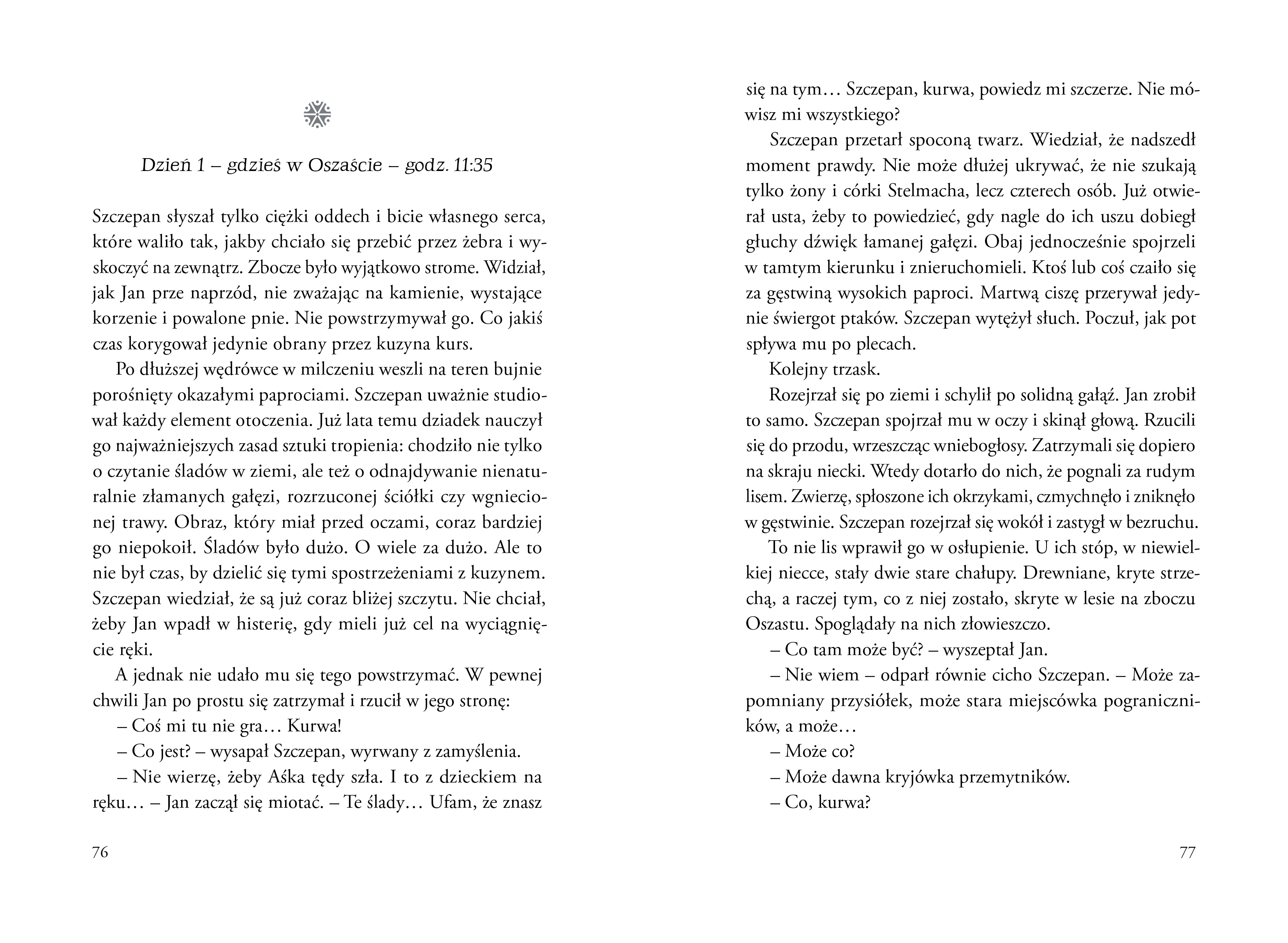 Podwójne śledztwo prowadzi coraz głębiej w krainę Oszastu – najbardziej odludnego obszaru Beskidu Żywieckiego. Tu urywają się wszystkie szlaki. Mówi się o tajemniczych zaginięciach, a według legend beskidzkie ścieżki spływają krwią.